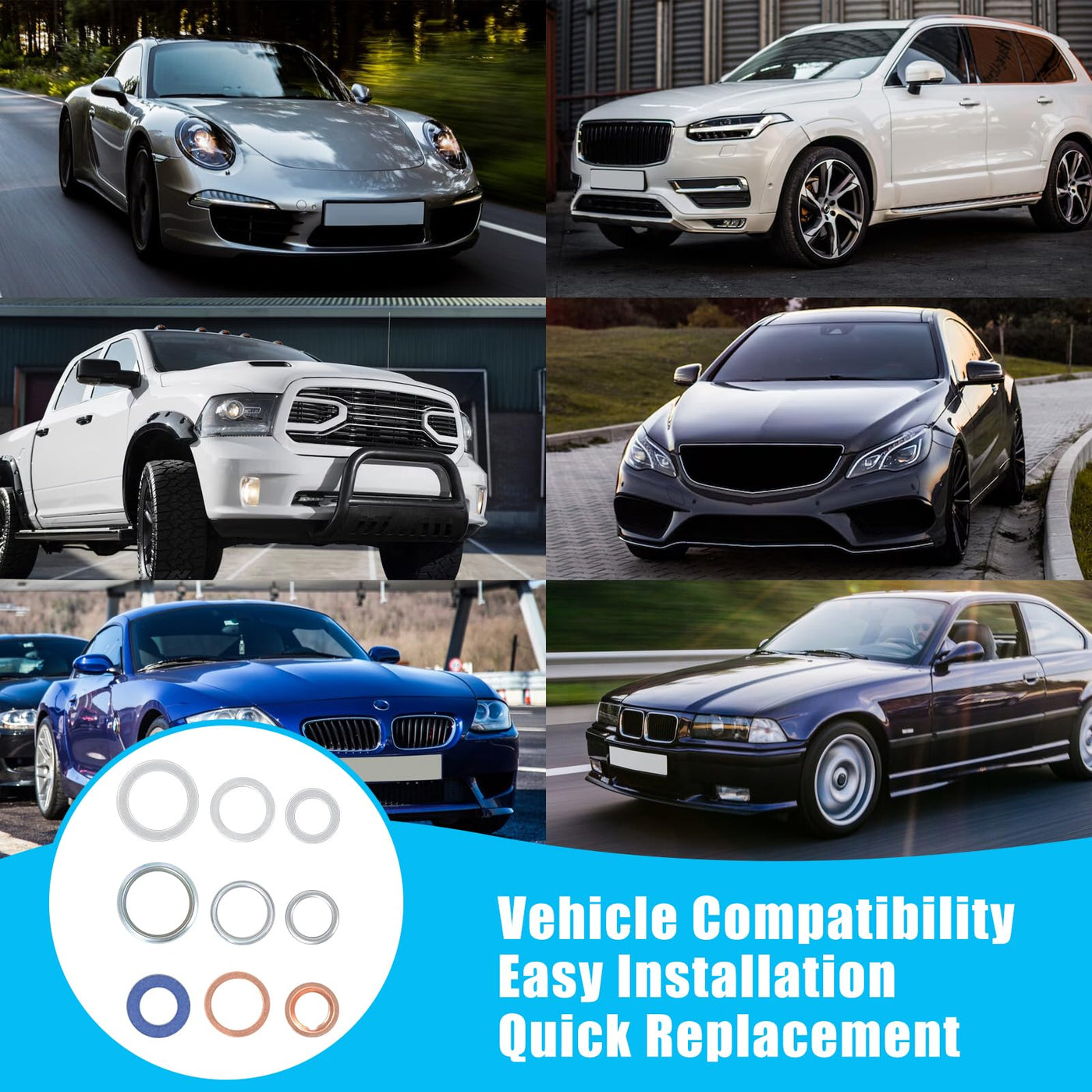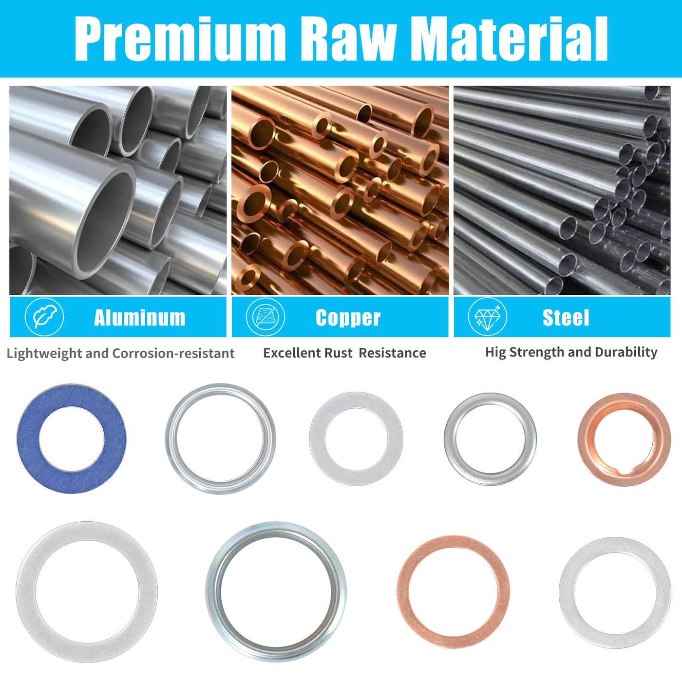 Item Specifics Condition: New Part Type: Oil Drain Plug Crush Washer Replacement Type: Direct Replacement Material: Aluminum, Stainless Steel, Copper Product Size M14 (0.55 / 14mm) M18 (0.7 / 18mm) M20 (0.8 / 20mm) Key Features Excellent Sealing Performance: Our oil drain plug crush washers provide a reliable seal to prevent any oil leaks during and after oil changes, ensuring optimal engine performance. Premium Materials: Our crush washer oil drain plugs are made from premium materials that withstand extreme temperatures and resist corrosion, ensuring long-lasting durability and performance. Versatility: Designed to fit a wide range of models, these oil drain plug gaskets offer versatile compatibility, making them suitable for various engines and oil drain plugs. Package Includes 20 Pcs ?? M14 Aluminum Flat Washers 10 Pcs ?? M18 Aluminum Flat Washers 20 Pcs ?? M20 Aluminum Flat Washers 20 Pcs ?? M14 Copper Flat Washers 70 Pcs ?? Metal O-Rings Total Quantity: 140 Pcs Oil Drain Plug Gaskets