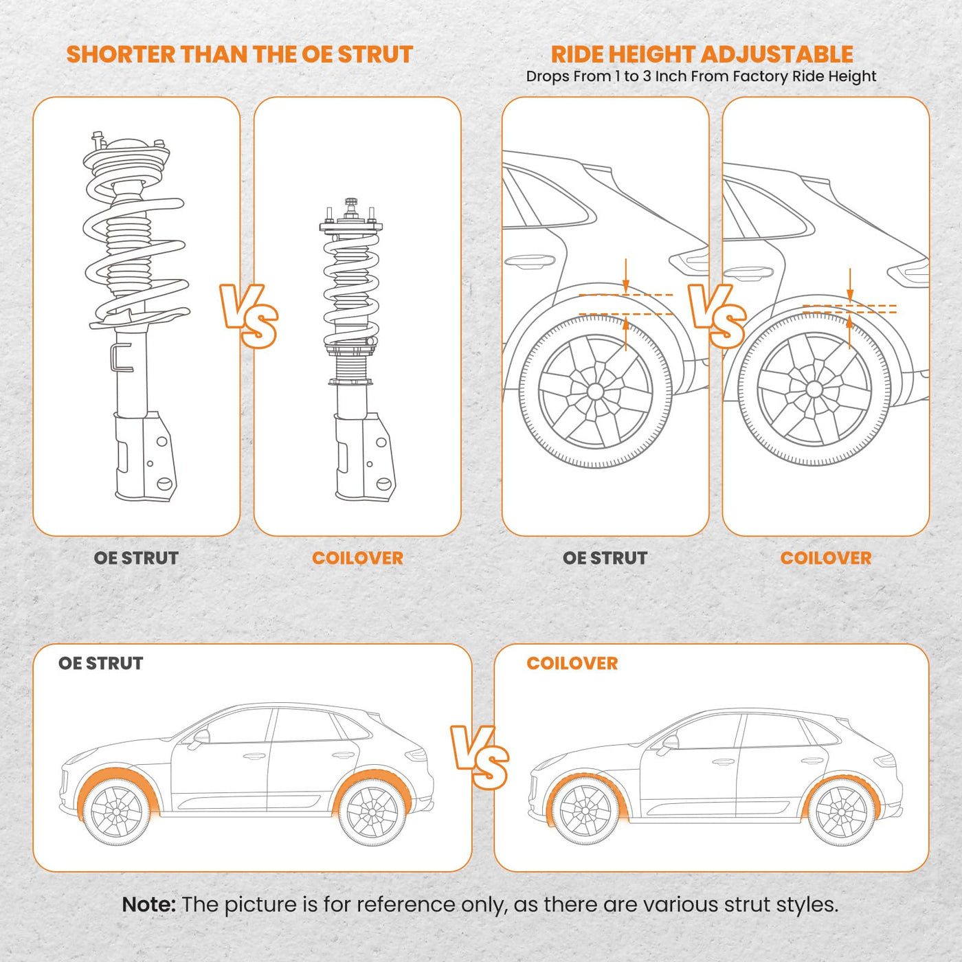 Q: Can I adjust the height of my vehicle with this coilover kit?A: Yes, the maXpeedingrods Coilover Kit allows for adjustable height ranging from 1 to 3 inches, giving you the flexibility to achieve a more aggressive stance while improving your vehicle's overall aesthetics and handling.