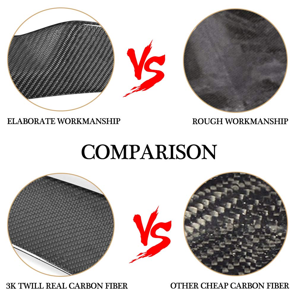 1. Functions: Create a new iconic look, maintain car body's stability. 2. Installation: Free glue tape included in the package for easy installation, perfect fitment, no modification 3. Material: Carbon Fiber 4. Processing: 3D design, test installation on real cars, fitment guaranteed 5. Surface finish: Matte black primer 6. Packing: Multilayer protected export carton, shockproof & crashpro.