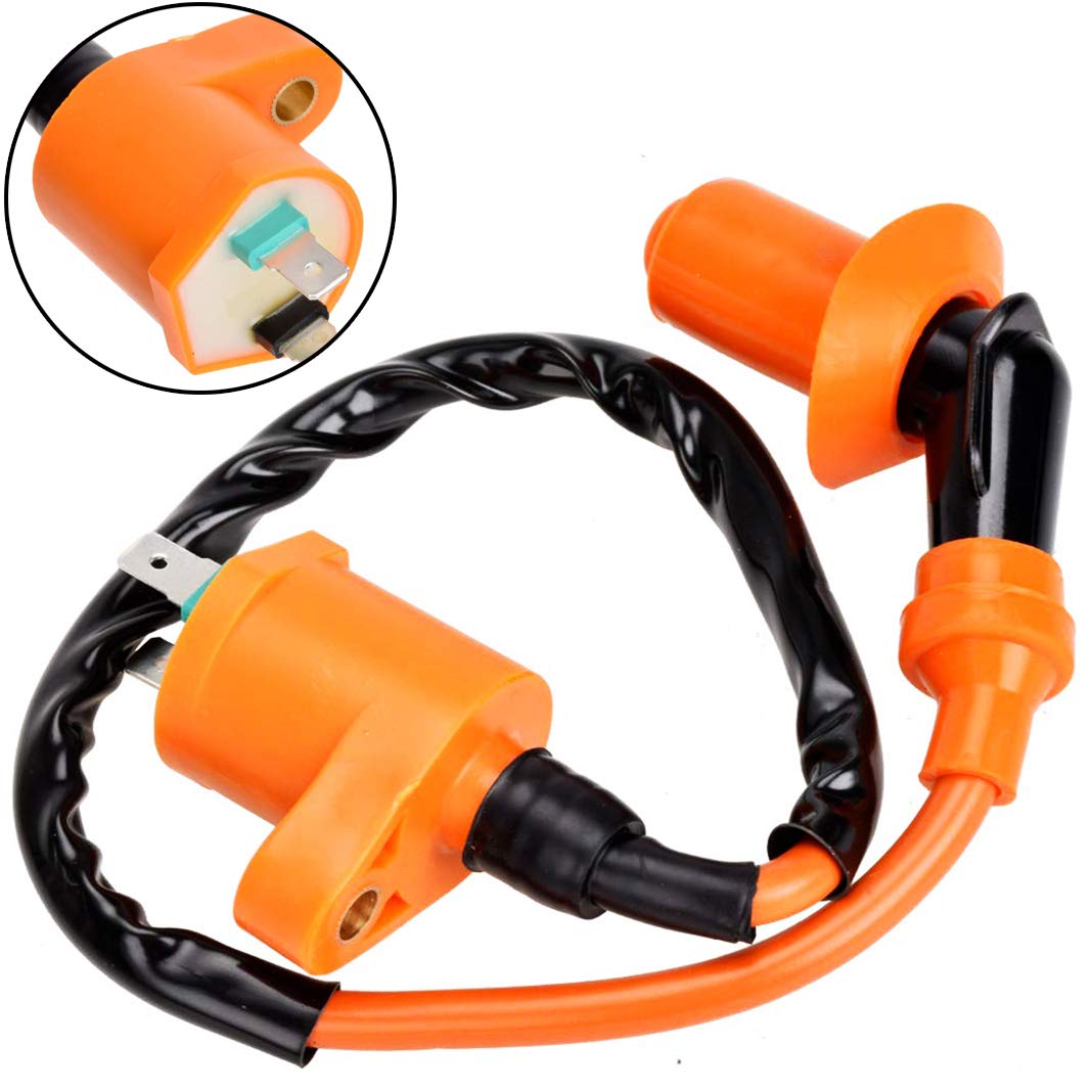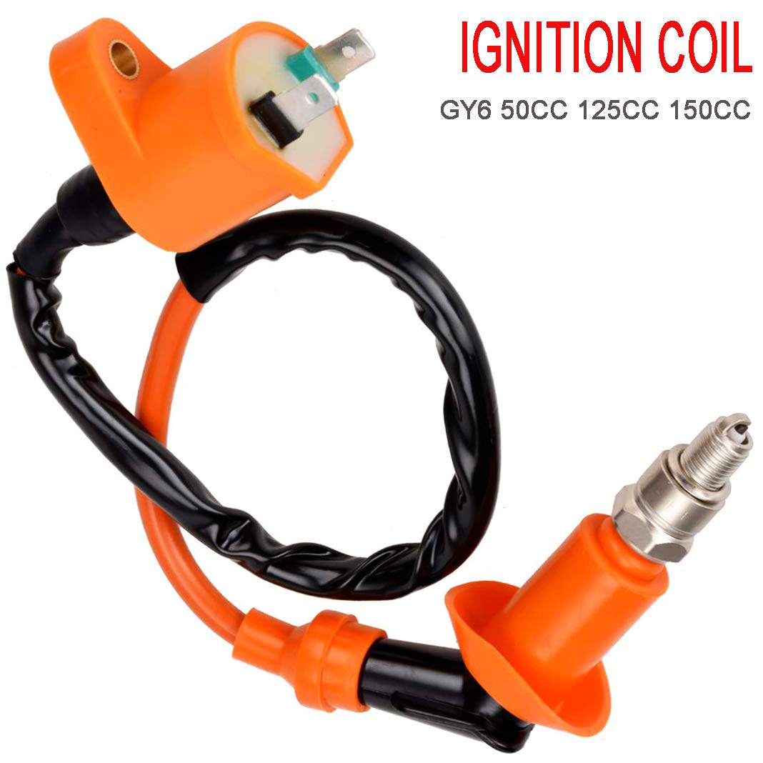 Note: Please check the description and size of items before your purchase. Maybe some difference on the color as the light during shooting. Spark Plug Features: Fits most of the 90cc - 150cc Chinese import Pit/Dirt Bikes and 4-stroke Bikes. Thread Diameter: 10mm. Hex Size: 5/8''. Racing spark plug, write, long life, high quality, high performance. Ignition Coil Features: For Chinese Gy6 50cc 125cc 150cc Scooter ATVs Go Karts. Overall Length: 19'' / 50cm. Wire Length: 16''. This coil can improve combustion efficiency, strengthen electrical performance. Match exactly with original equipment in perfect fitness, easy to install.