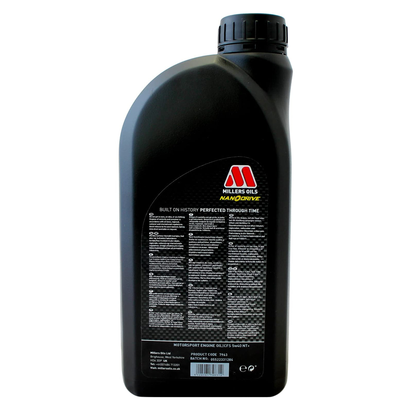 Q: What are the benefits of using Millers Oils CFS 5w40 NT+ for my modified engine?A: Millers Oils CFS 5w40 NT+ offers several benefits for modified engines, including a 15% reduction in friction and a 17% reduction in wear compared to previous formulations. Its fully synthetic Triple Ester Nano Technology enhances power output, improves torque, and promotes longer engine life through superior anti-friction and anti-wear characteristics.