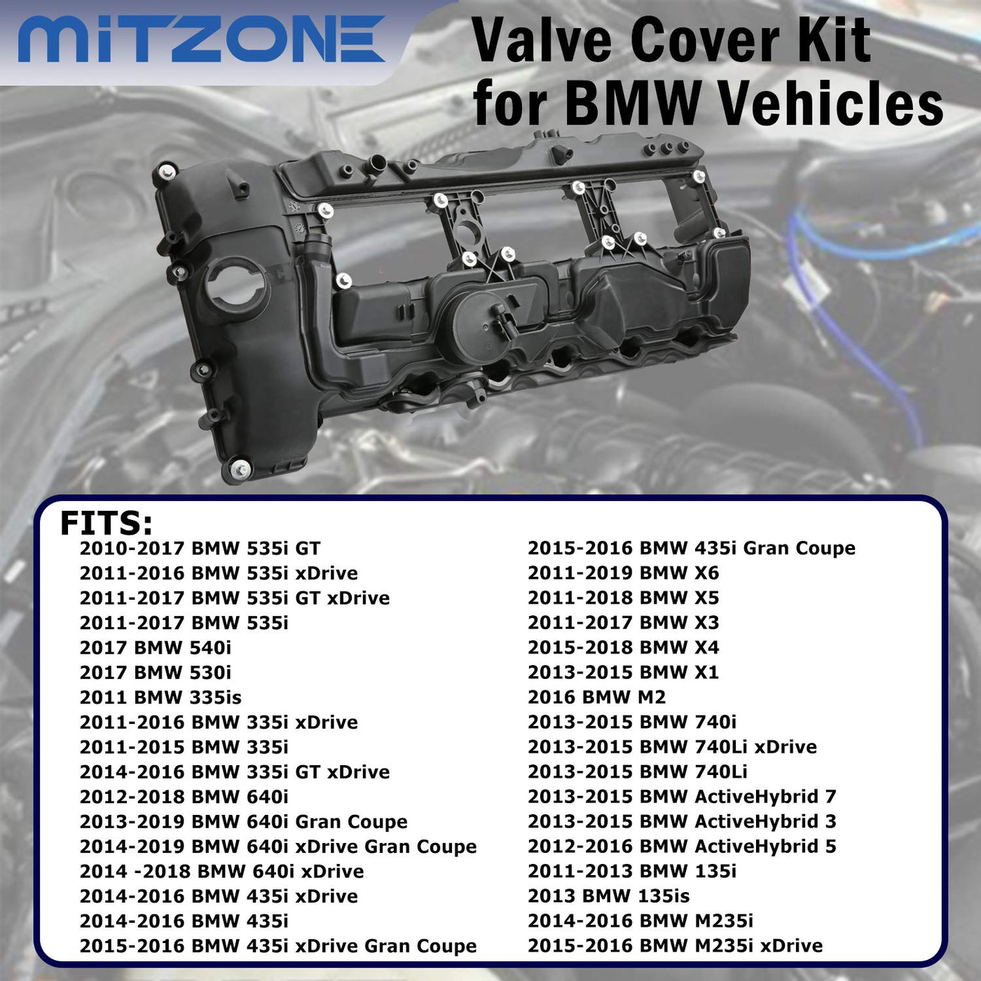 - Q: Is this valve cover compatible with my BMW model? A: This valve cover is compatible with various BMW models from 2010 to 2019, including 335i, 535i, X5, X3, X6, and 740i. Please refer to the detailed fitment list provided in the description to confirm compatibility with your specific model.