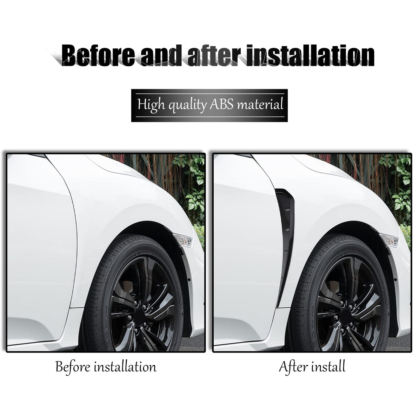 Miytsya 2 Pcs Car Fender Side Vents, Abs Carbon Fiber Spoiler, Fender Decorative Stickers, Air Flow Intake Hole Grille Auto Exte