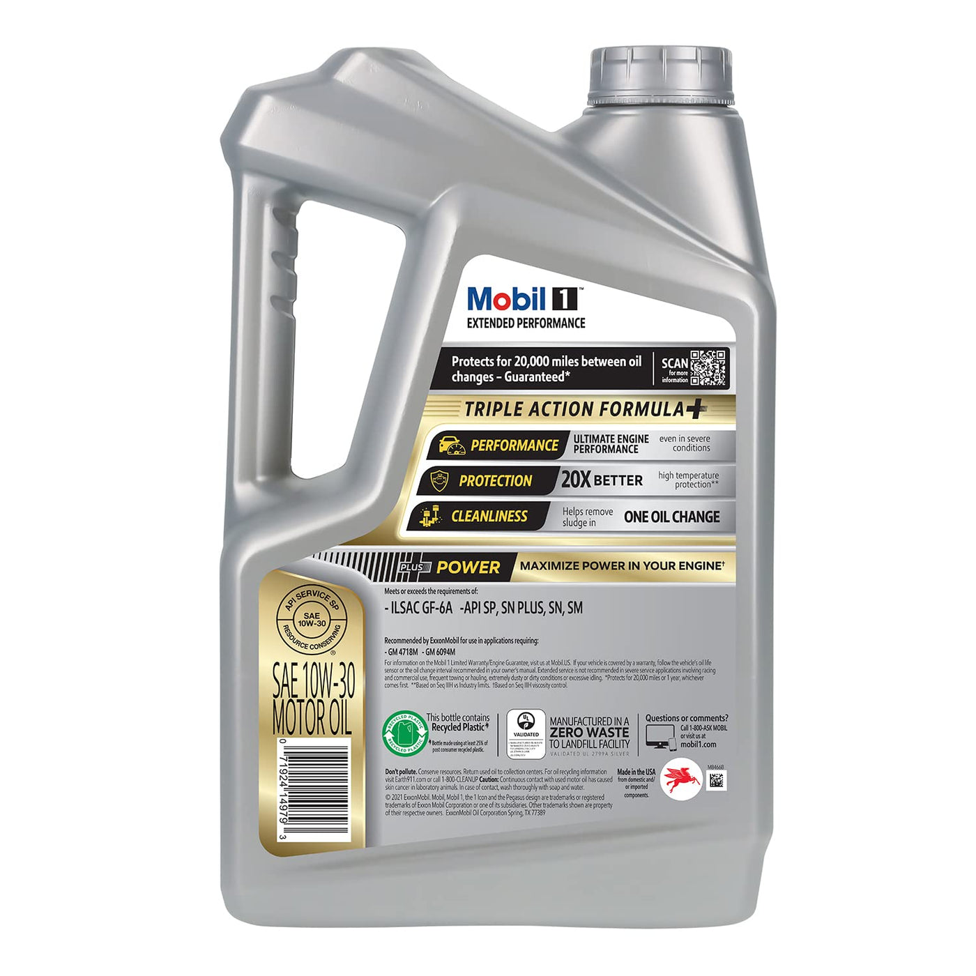 If You Trust Your Vehicle To Be There For You, You Need To Be There For Its Engine-With Mobil 1 Extended Performance Full-Synthetic Motor Oil 10W-30 Our Ultimate Full-Synthetic Motor Oil Meets Or Exceeds The Industryas Toughest Standards To Help You Get The Most From Your Engine For Up To 20,000 Miles Between Oil Changes-Guaranteed* Mobil 1 Extended Performance Utilizes Mobil 1As Triple Action+ Formula To Combine Outstanding Engine Performance, Protection, And Cleanliness With The Added Benefit Of Maximized Engine Power Specialty Components In Synthetic Oil Reduce Friction, Helping To Prevent And Remove Sludge Buildup In Just One Oil Change This Technologically Advanced Formulation Provides 20X Better** Internal Engine Heat Protection Than Industry Standards (Up To 500 Degrees Fahrenheit) As Well As Excellent Low-Temperature Protection (To -40 Degrees Fahrenheit)-Bringing Quick Cold-Weather Starting And Ultra-Fast Protection To Your Engine Mobil 1 Extended Performance Meets Ilsac Gf-6 Standards To Help Provide Low-Speed Pre-Ignition (Lspi) And Timing Chain Wear Protection While Keeping Your Engine Clean And Helping To Improve Your Fuel Economy Mobil 1 Extended Performance Full-Synthetic Motor Oil 5W-30 Also Helps Control Oxidation To Prevent Oil Breakdown This Cutting-Edge Formula Is Recommended By Exxonmobil For All Types Of Modern Vehicles, Including High-Performance, Turbo-Charged, And Supercharged Gasoline And Diesel Multi-Valve Fuel-Injected Engines Found In Passenger Cars, Suvs, Light Vans, And Light Trucks Mobil 1 Is Americaas #1 Synthetic Motor Oil Brand At Retail,*** Trusted And Recommended By Car Builders And Experienced Mechanics, And Is The Official Motor Oil Of Nascara (*Protects For Up To 20,000 Miles Or 1 Year, Whichever Comes First To Learn More About The Mobil 1 Limited Warranty, Visit Mobilus **Based On Seq Iiih Vs Industry Limits ***Source: The Npd Group Retail Tracking Service Dollar Sales Pcmo Full-Synthetic 52 Weeks Ending July 1, 2023)