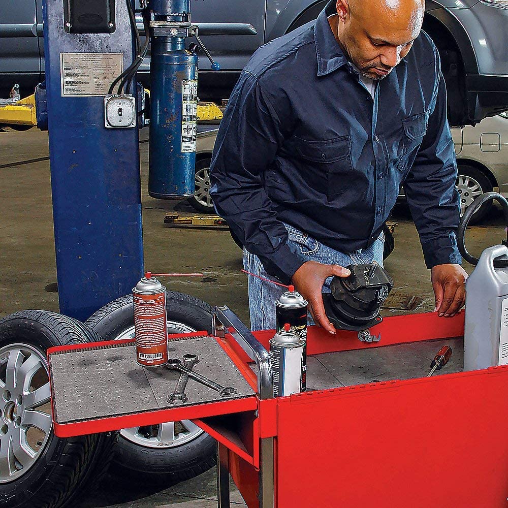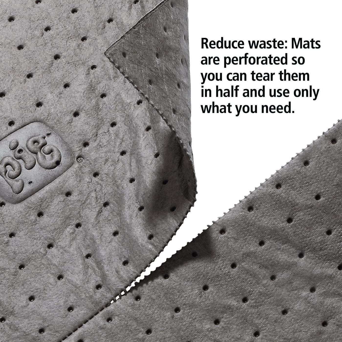 PIG Mat lasts 2X longer than ordinary mats for fewer change-outs. It absorbs oils, coolants, solvents and water; just about any mess you need to clean up! Absorbed leaks and drips blend right in; dark gray color hides grime so mat stays on the job longer. Oil mat can be wrung out and incinerated after use to reduce waste or for fuels blending. Dispenser box makes it easy to take, carry and store your mat while protecting it from dirt and moisture. PIG Universal Absorbent Pads are ideal for catching drips and soaking up spills. Each mat pad is perforated in 10" x 15" sections and the easy-tear perforations let you take only what you need so you use less mat and save money. Light-weight construction is ideal for small tasks and cleanups. Mats take on the properties of absorbed liquids - always take proper precautions when handling saturated absorbents.