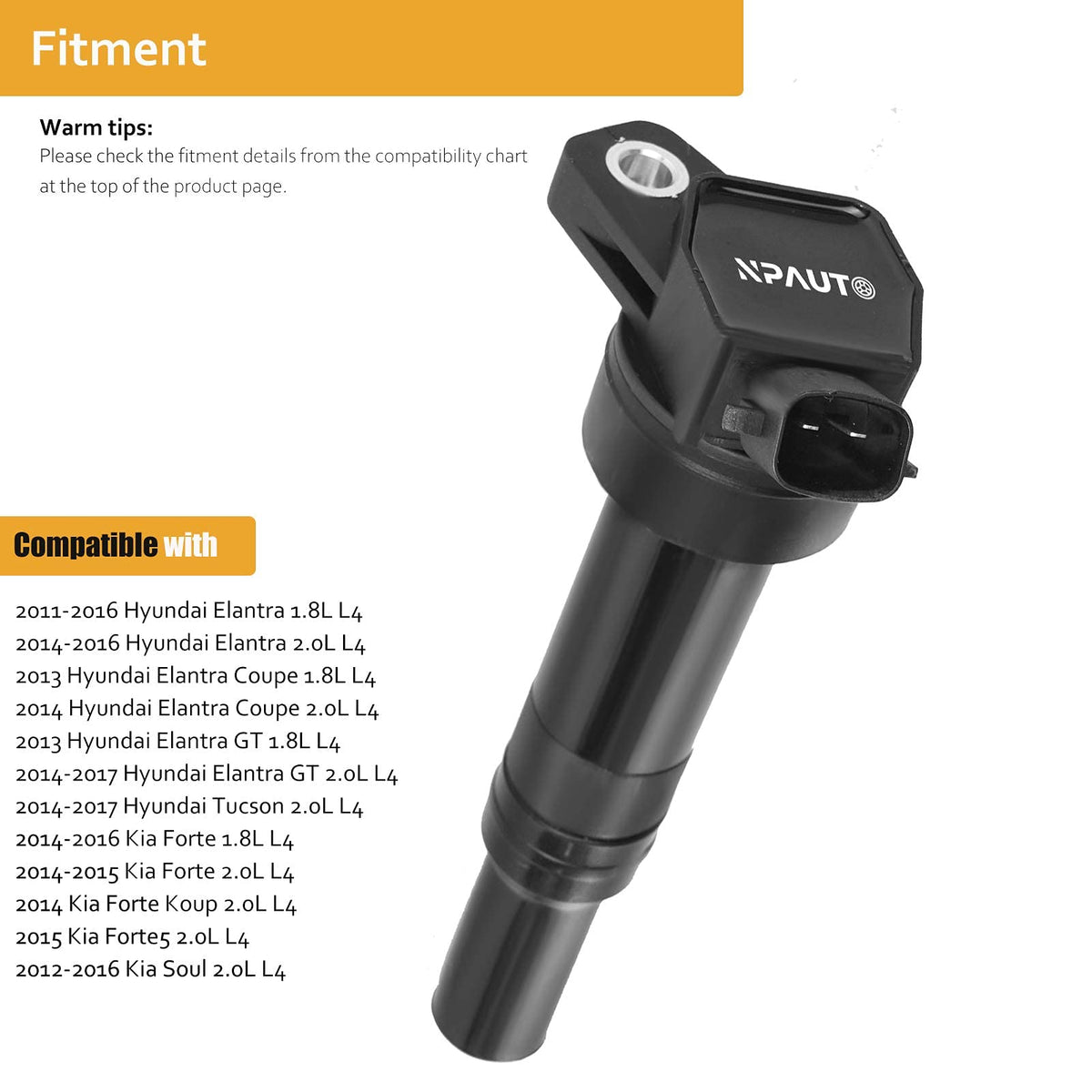 Npauto Ignition Coil Pack Compatible With L4 1.8 2.0 2011 2012 2013 2014 2015 2016 Hyundai Elantra, 2014-2016 Kia Forte, Kia Soul, 2014-2017 Elantra Tucson, Uf651 27300-2E000 5C1861, Set Of 4