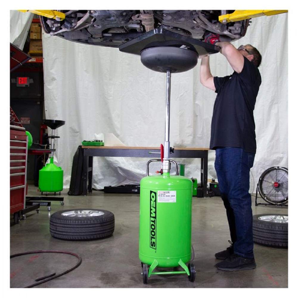 The OEMTOOLS 87035 Transmission Drain Pan is designed to fit the top of the filter funnel on most lift drains, including an oil lift drain that has an extra large funnel. You can use this oil lift drain pan with an OEMTOOLS portable oil lift drain (87031 or 87032), or with any leading oil tank drain lift. The flexibility of these drain pans allows you to use any of them as an automotive oil drain pan, a radiator drain pan, a motorcycle drain pan, a coolant drain pan, or as a drain pan to collect many other types of fluid. The drain pan has a large catching area that reduces the occurrence of spills and dangerous waste fluid on the ground. This shallow oil drain pan features a debris catching screen that acts as an oil filter drain, ensuring that only waste fluid enters the funnel drain. You won't have to worry about losing any of your tools in this pan. And this square pan is constructed with flexible plastic to prevent cracking if it is dropped or stepped on, easily snapping back into place without lasting damage.