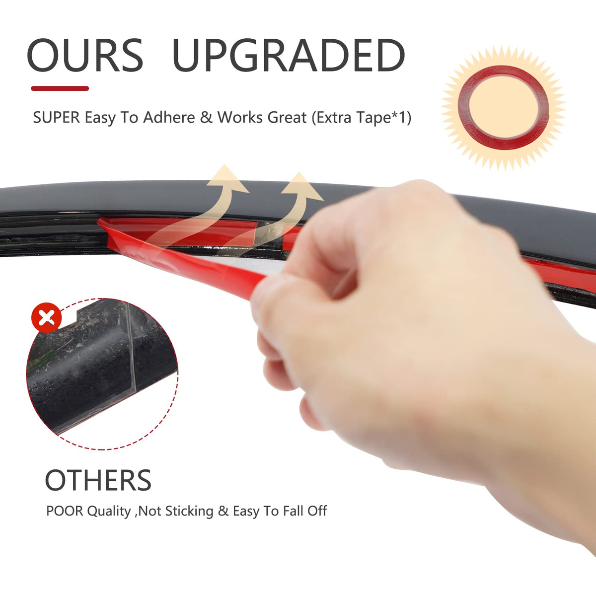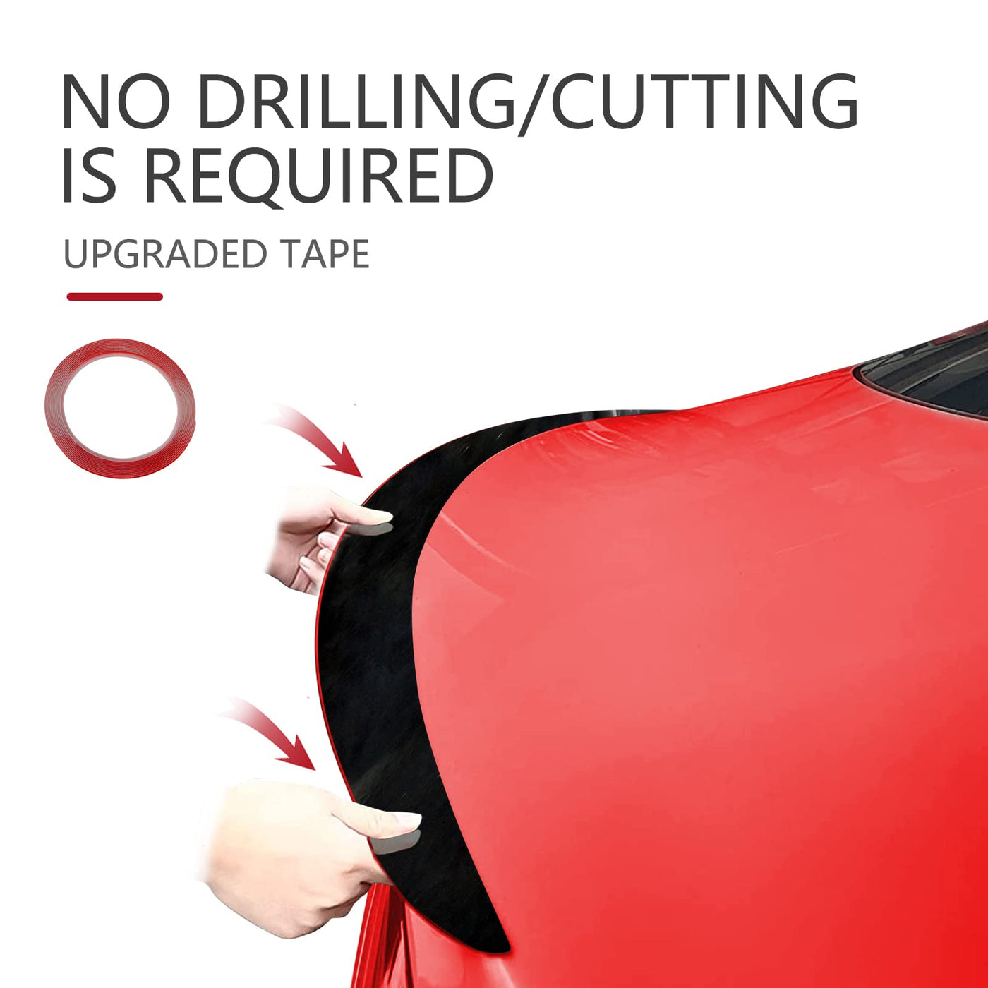 Q: What installation tips should I follow for the rear spoiler?A: The rear spoiler features self-adhesive backing for easy installation. Ensure that the temperature is above 10℃ (50℉) for better adhesion, and avoid water contact for 48 hours after installation.