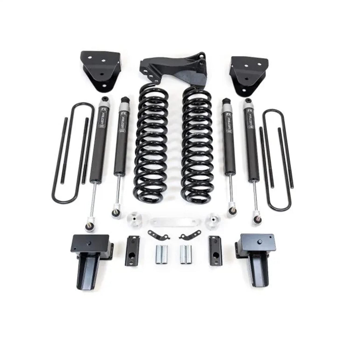 Readylift Suspension Is Now Offering Our First 4' Coil Spring Lift Kit Fitting 2017-2022 Ford Super Duty F250/F350 4Wd Power Stroke Trucks. The 49-27420 Includes Front And Rear Falcon 1.1 Monotube Series Performance Shocks With Our Venerable Front Track Bar Relocation Bracket, Radius Arm Drop Brackets, And Rear Fabricated Blocks. This Gives Super Duty Owners An Excellent Alternative For Lifting Their Trucks To Fit Larger Tires. The Coil Spring System Allows For Increased Tire Sizes And Widths Along With Providing Improved Ground Clearance On A Head-Turning Stance! Many Consider This Lift Height The Sweet Spot For Super Duty Driving Dynamics And Maximum Tire Size While Maintaining Everyday Usefulness. This Optimum Lift Height Allows For Up To 37' Tall Tires. The Coil Spring Kit Delivers A Great Ride And Handling Performance! The Key Ingredients To Improving Your Ride Are The New Specially Engineered Coil Springs Teamed With Falcon Shocks And A Track Bar Relocation! This Combination Is More Than Just A Lift Kit, This Is A Performance And Ride-Enhancing Kit That Will Really Delight Consumers With How Well It Rides And Performs Both On And Off-Road. The Readylift 4' Coil Spring Lift Kit System For 2017-2023 Ford Super Duty Trucks Also Includes Model-Specific Brake Line Extension Brackets, Our Time-Tested Bump-Stop Extension Brackets, And New Front Sway Bar Frame Mount Extension Brackets To Keep The Factory Sway Bar In The Proper Position. If You Want Tough Looks And A Smooth But Controlled Ride, Then You Want The New Super Duty 4' Coil Spring Suspension Kit System.