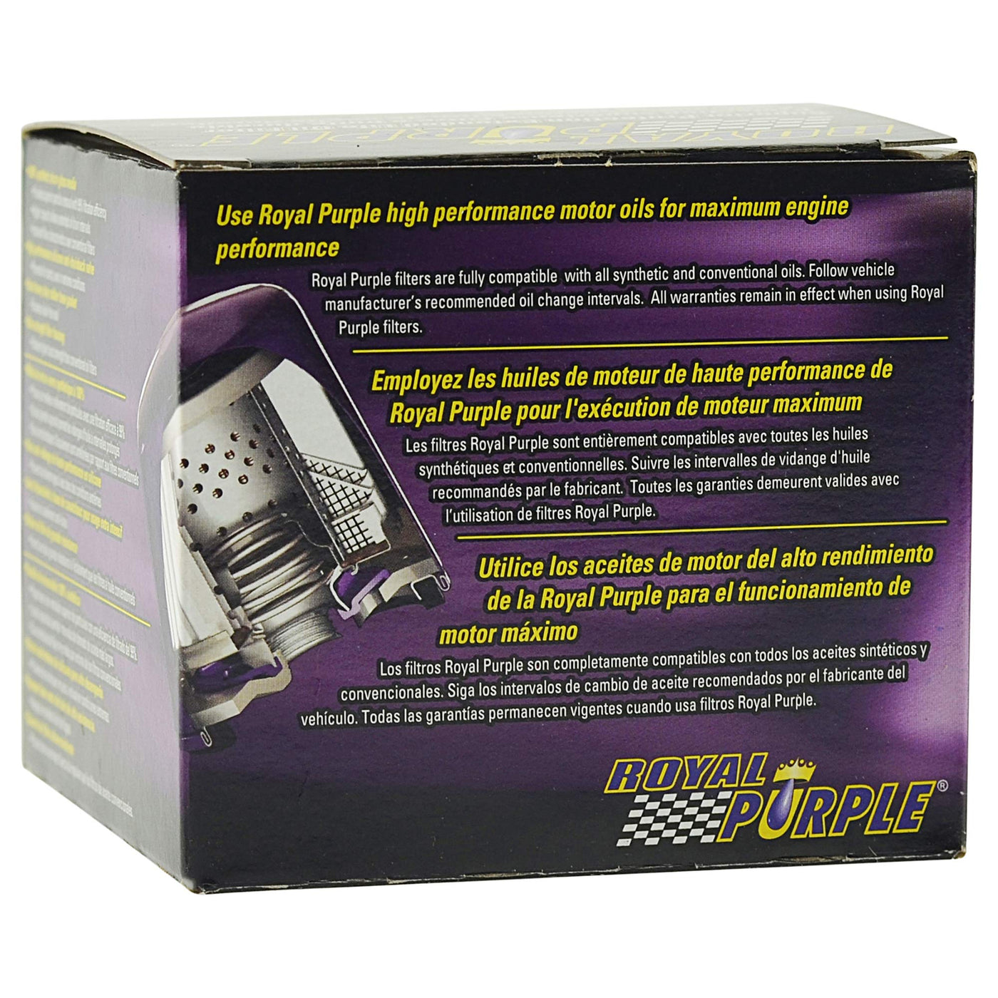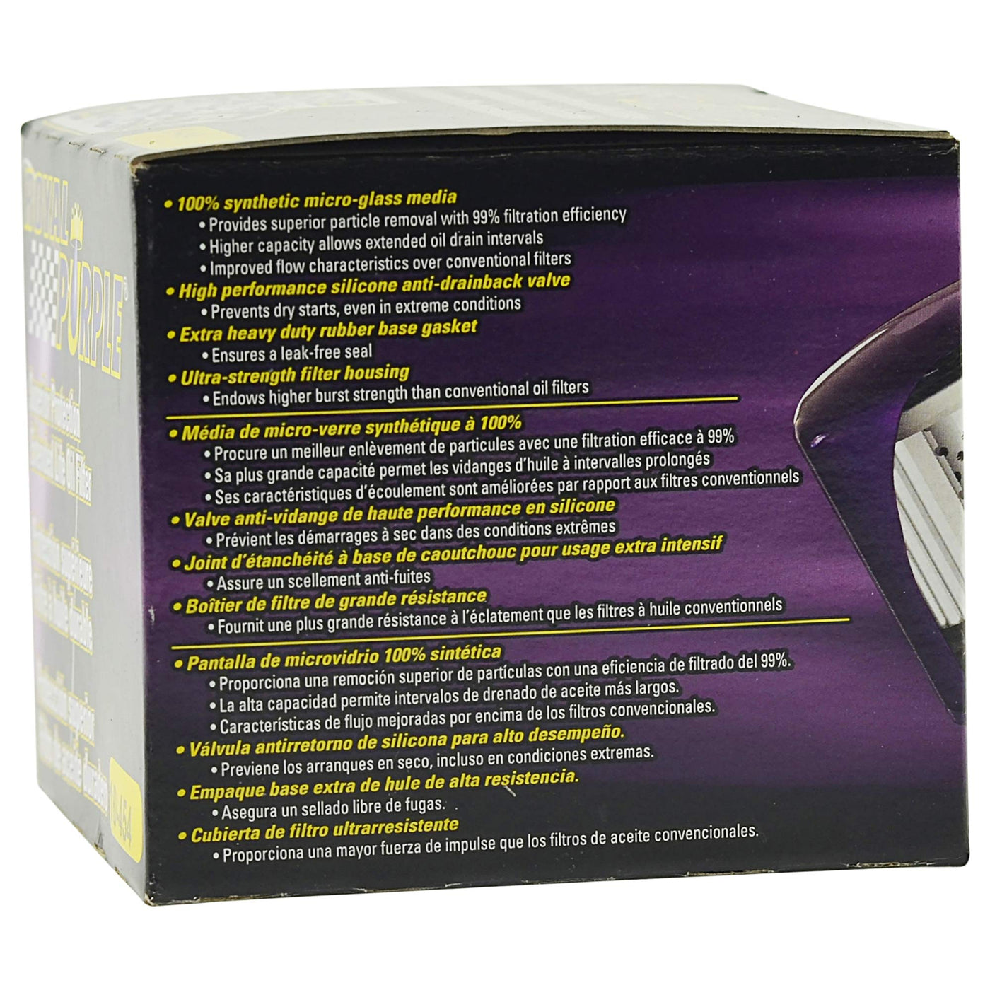 Royal Purple Oil Filter Features 100 Percentage Synthetic Micro-Glass Media For Superior Particle Removal With 99 Percentage Filtration Efficiency At 25 Microns. This Product Is Designed With A High-Performance Silicone Anti-Drain Back Valve That Prevents Dry Starts, Even In Extreme Conditions And An Extra Heavy-Duty Rubber Base Gasket That Ensures A Leak-Free Seal. The Royal Purple Oil Filter Also Provides An Ultra-Strength Filter Housing That Can Endure Higher Burst Strength Than Conventional Filters. Royal Purple Filters Are Fully Compatible With All Synthetic And Conventional Oils, Provide Superior Particle Removal, High-Performance, Optimized Flow Characteristics For Maximum Performance, And Longer Filter Life.