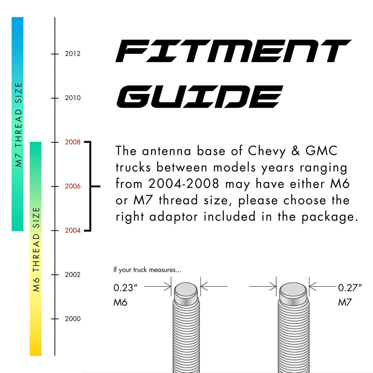 Q: Is the RYDONAIR Short Antenna compatible with all Chevy Silverado and GMC Sierra models?A: Yes, the RYDONAIR Short Antenna is designed to be compatible with all model years of Chevy Silverado and GMC Sierra trucks, including various models like the 1500, 2500, 3500, and more.