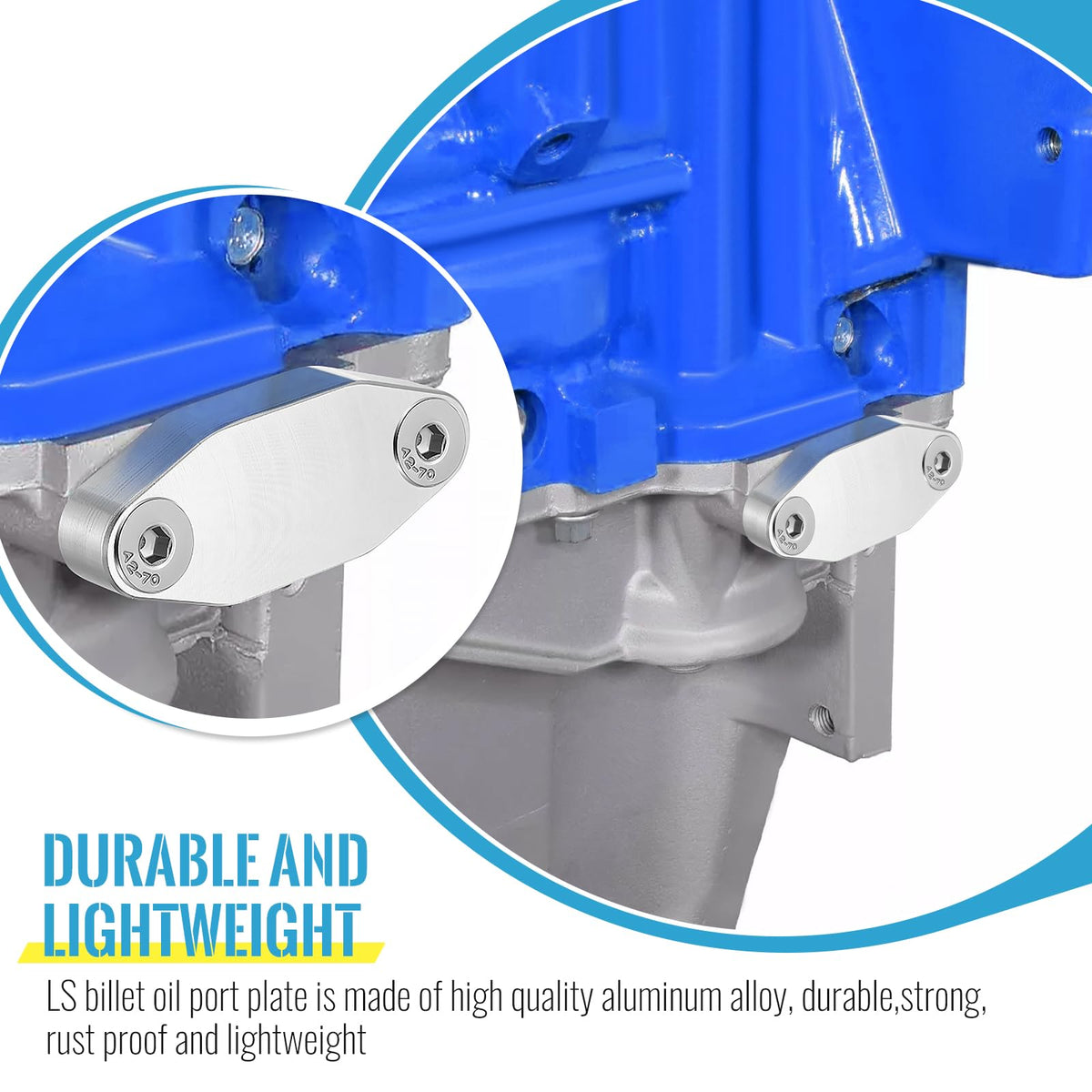 Saillong 1 Pack LS Billet Oil Cooler Block off Plate on Oil Pan LS Billet Oil Port Plate Compatible with Gen III IV Series Engin
