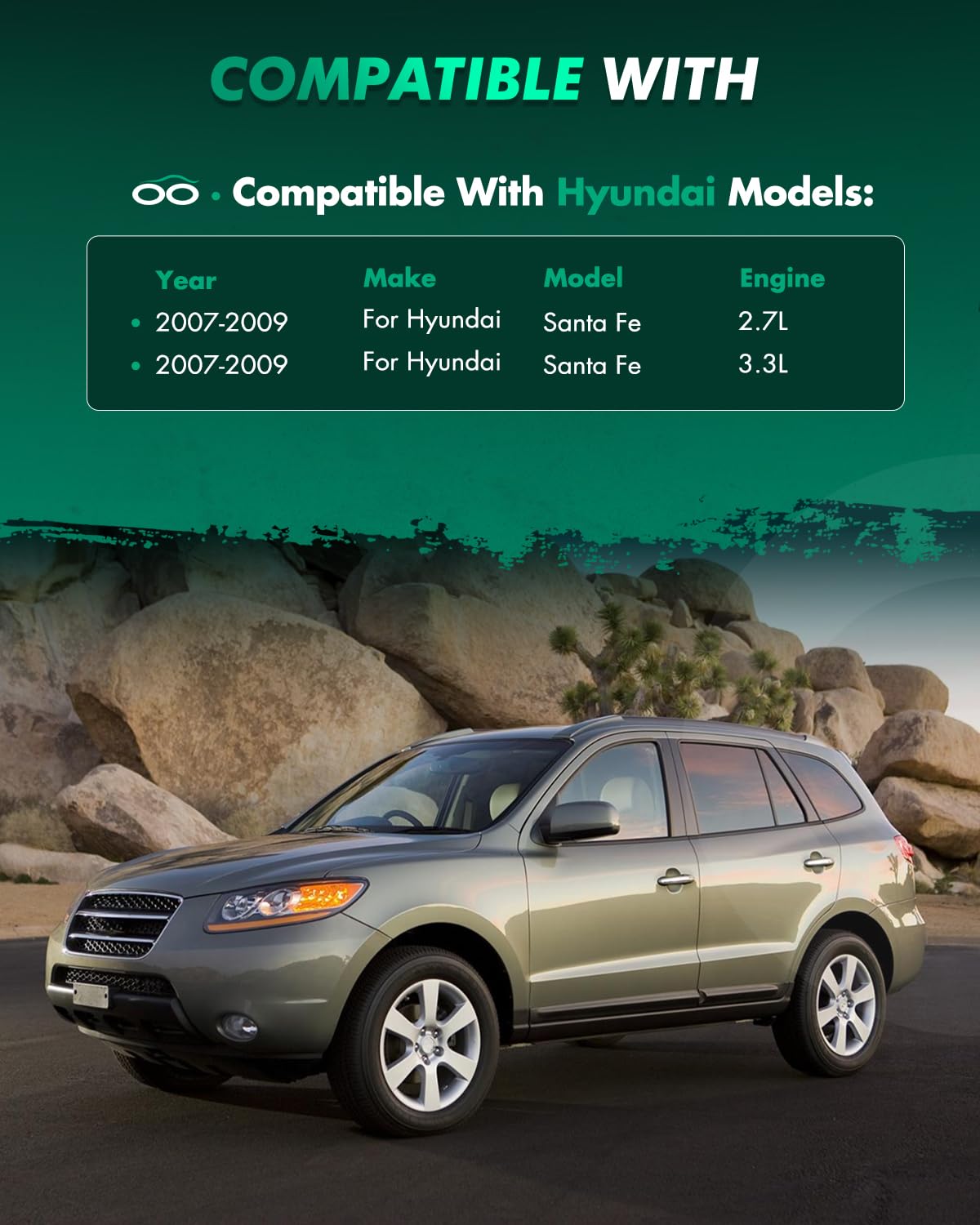 COMPATIBLE (please check:Year/Make/Model/Trim/Engine):2008-2009 for Hyundai for Santa Fe GL Sport Utility 4-Door2007-2009 for Hyundai for Santa Fe GLS Sport Utility 4-Door2007-2009 for Hyundai for Santa Fe Limited Sport Utility 4-Door2007-2009 for Hyundai for Santa Fe SE Sport Utility 4-DoorPART NUMBERS:11285 | 11286 ITEM-OFFERED:--1x front left strut shock assembly with coil spring--1x front left strut shock assembly with coil spring PREMIUM-PERFORMANCE:Manufactured with first-class steels, featuring a superior tube and weld design to deliver structural integrity and durability