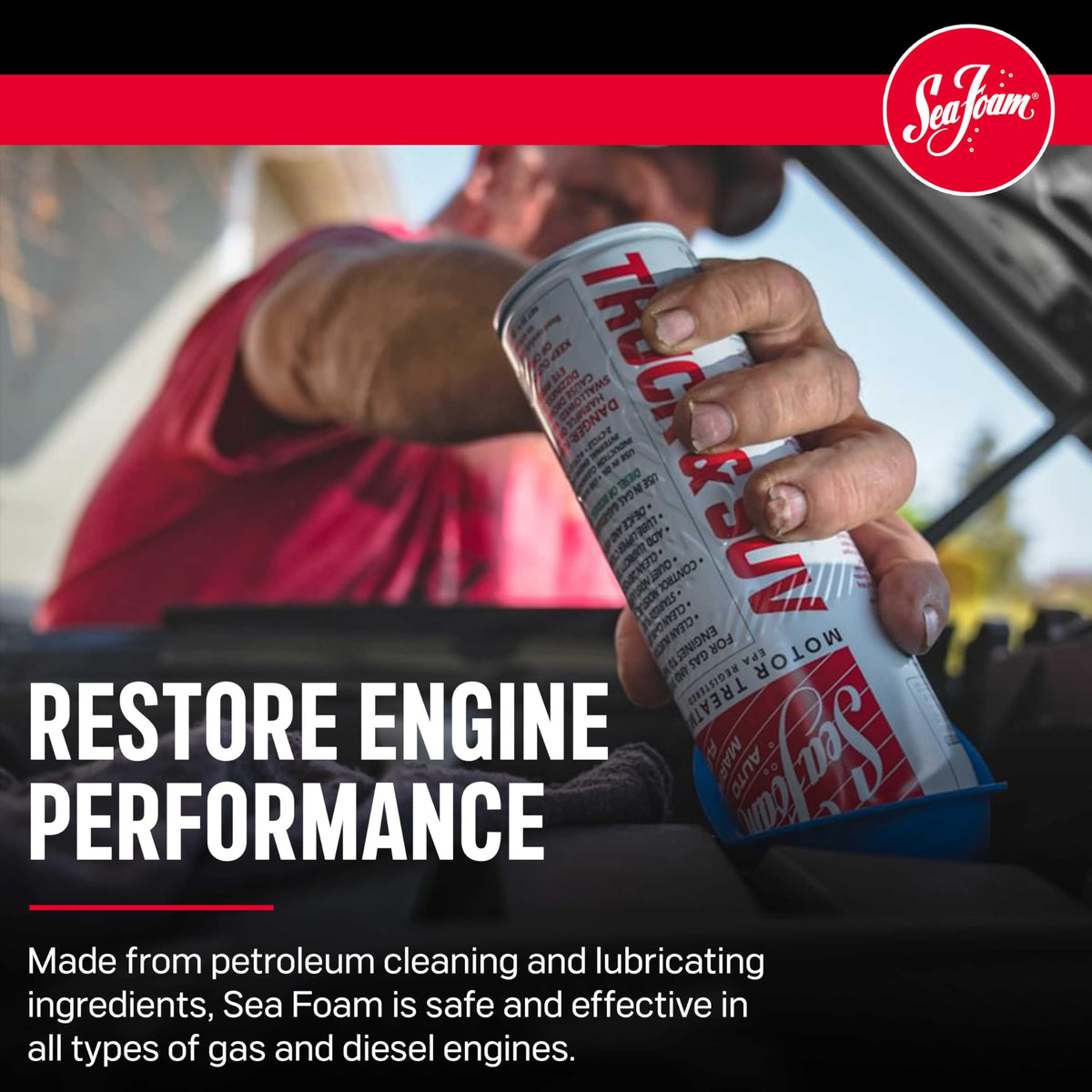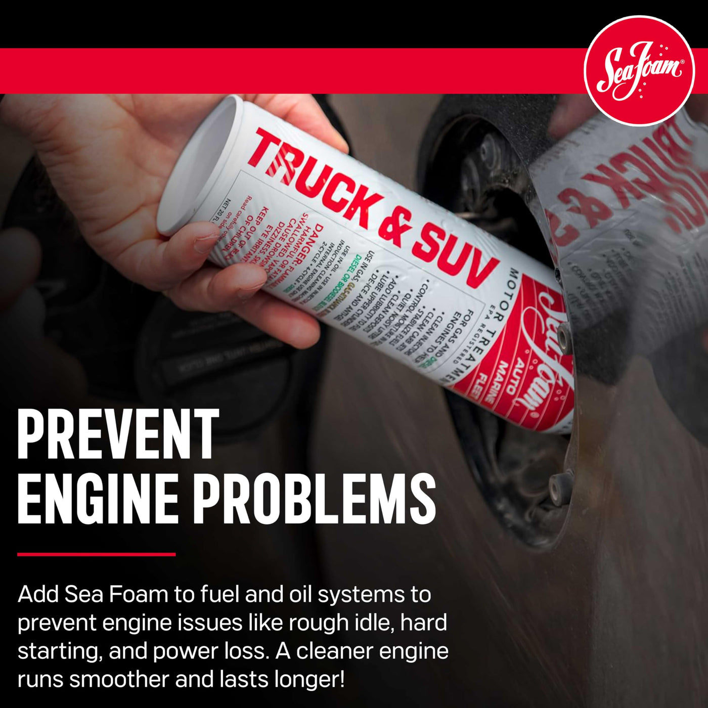 Help your engine run smoother and last longer! Sea Foam works in fuel and oil systems to clean and lubricate critical engine areas. Made from petroleum ingredients, Sea Foam is safe and effective when used in any gasoline or diesel engine. The 20 oz. Truck & SUV size is great for treating larger vehicles! Just pour it in!