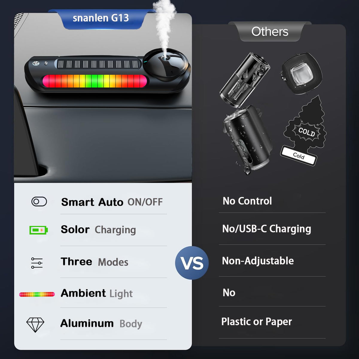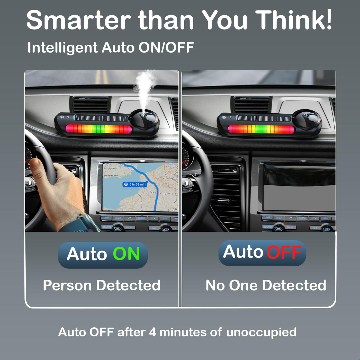 Smart Car Air Freshener, Solar Powered Car Diffuser, 70ML Essential Oil Diffuser Last 5 Months, Auto On/Off, Aluminum Alloy, 3 M