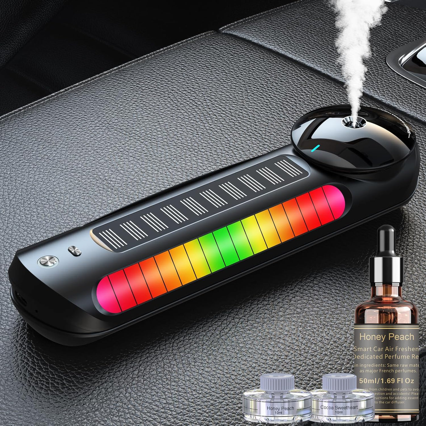 Smart Car Air Freshener with Solar, Car Diffuser with Auto On/Off , 3 Adjustable Concentration, Ambient Light, Built-in Battery, Ambient Light, Best Essential Oil Diffuser for Car Best Gift(Black)