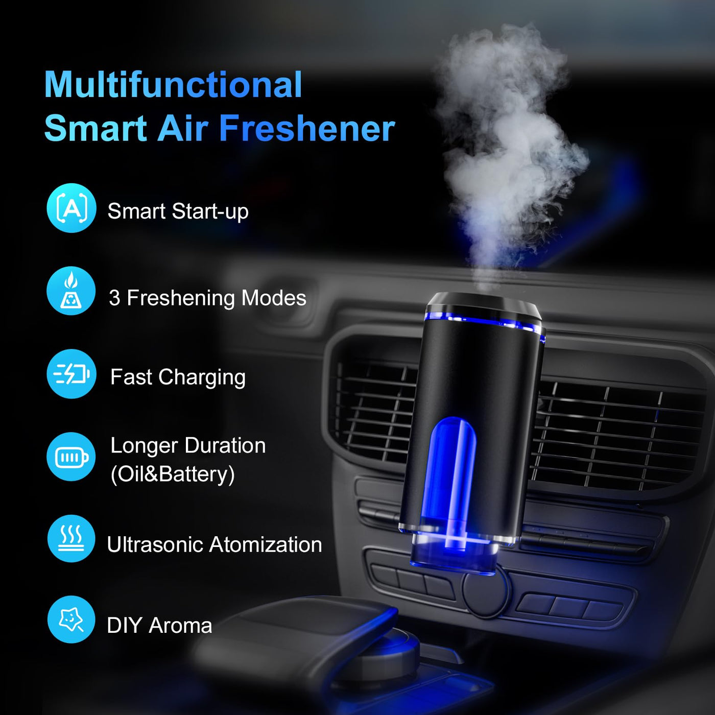 Smart Car Air Freshener with 3 Essential Oils, Car Fresheners Long Lasting, Rechargeable Auto Aroma Diffuser and DIY Perfume Cho