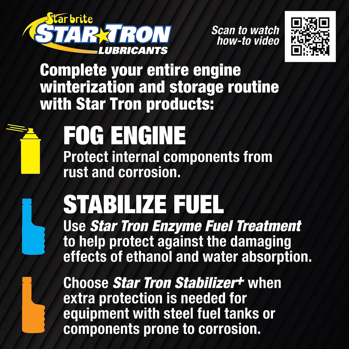 Q: Can STAR BRITE Fogging Oil help with engine startup after storage?A: Yes, STAR BRITE Fogging Oil features a special formula that ensures quick and easy engine startup after long-term storage, making it an ideal choice for maintaining engine performance.