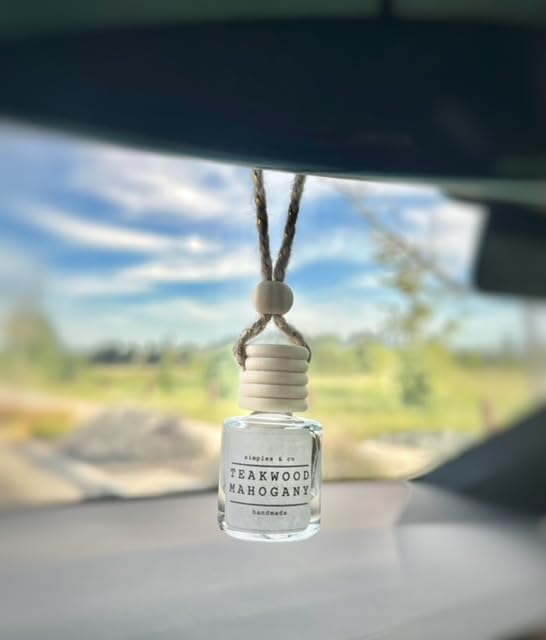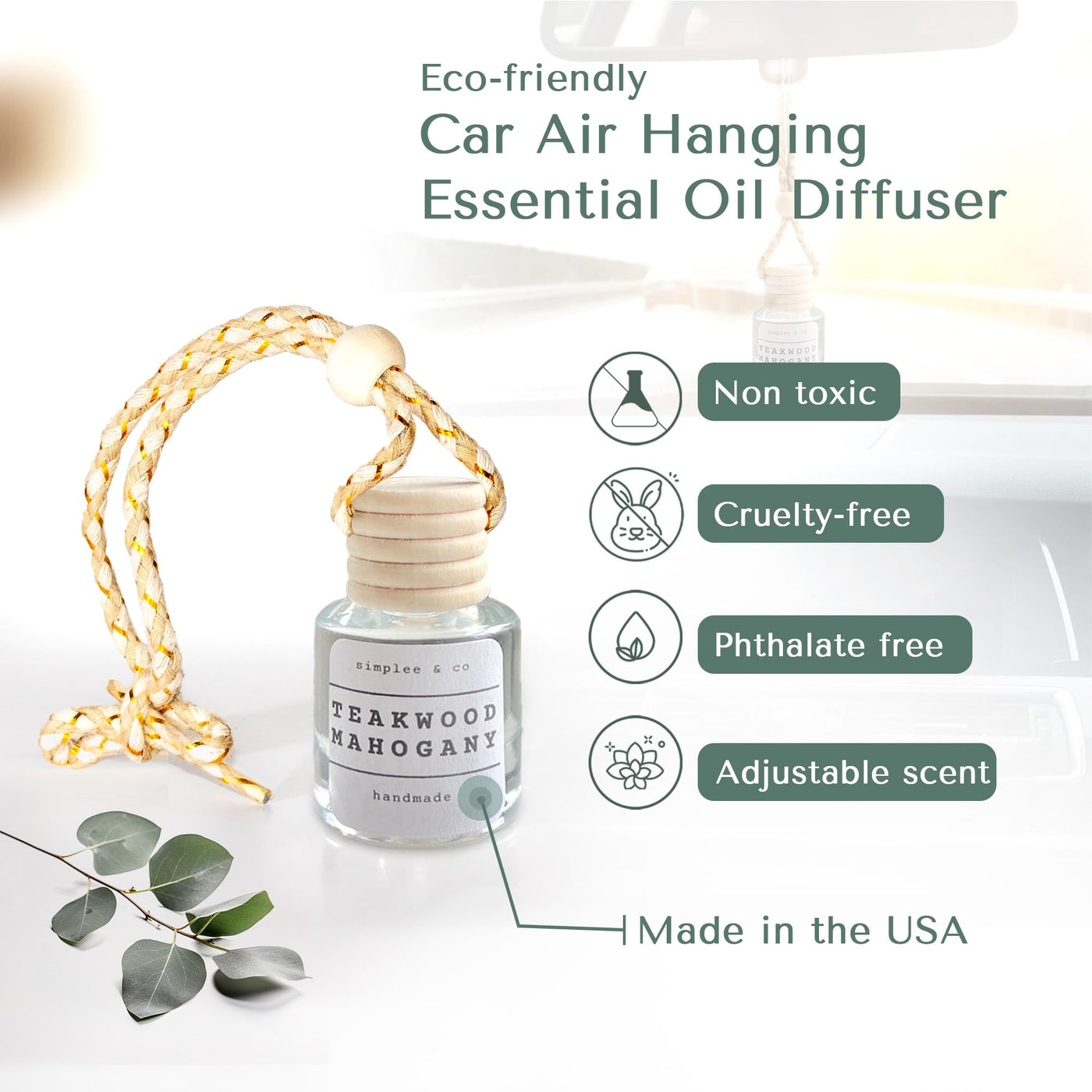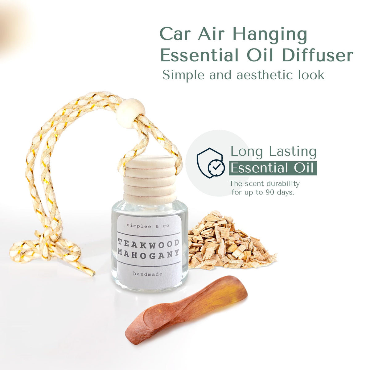Teakwood and Mahogany Car Air Hanging Essential Oil Diffuser, Car Air Freshener Diffuser with Long Lasting Essential Oils, Aroma
