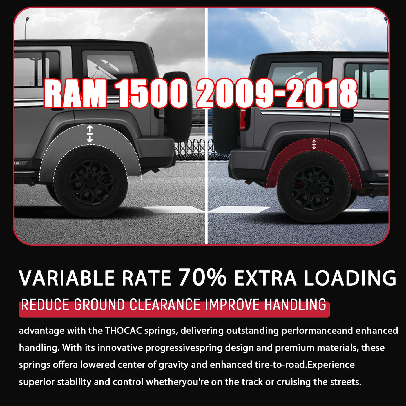 THOCAC Variable - Rate Heavy Duty Rear Coil Springs Kit for 2009-2018 Ram 1500 2wd 4wd with 70% Extra Load Capacity (1100 Pounds