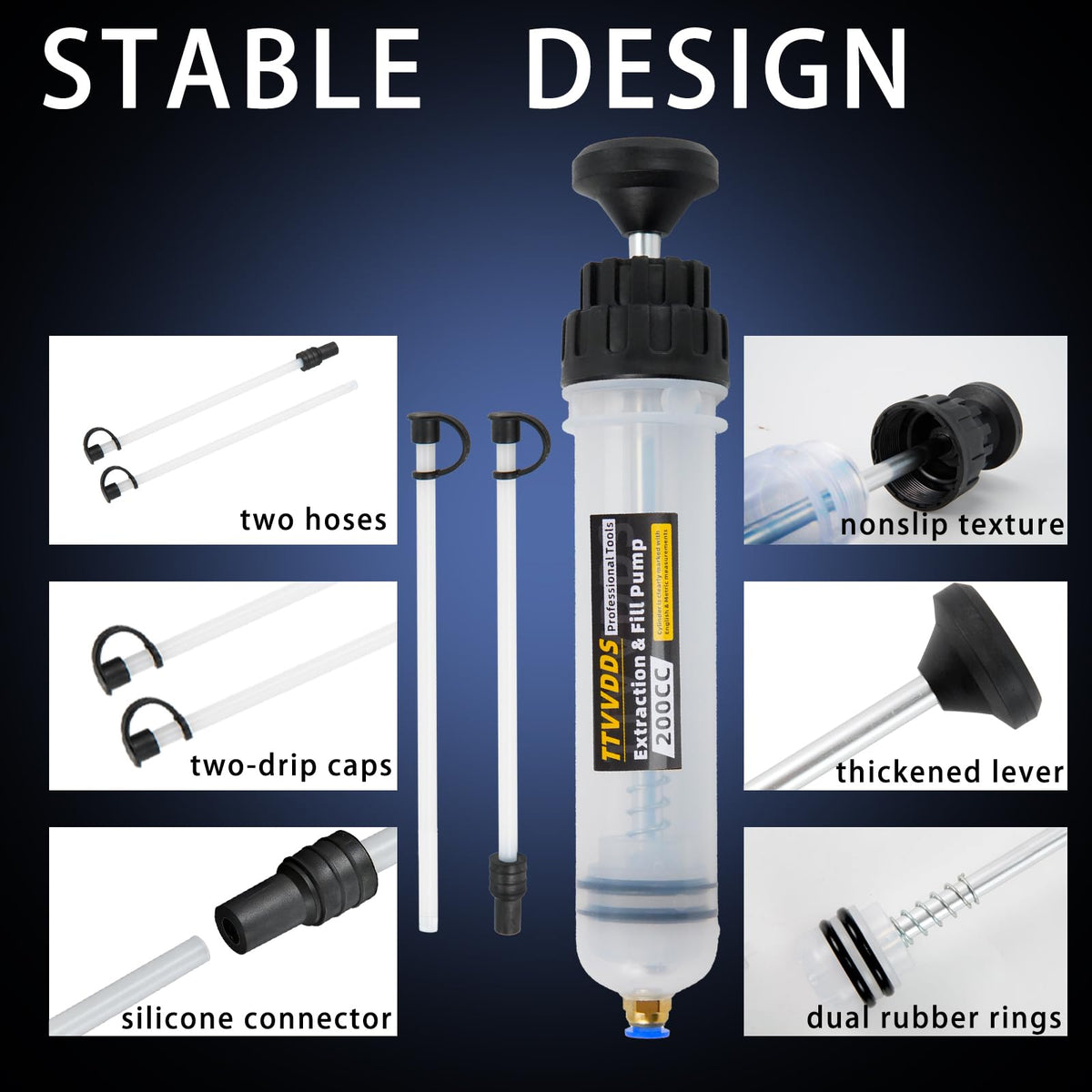 TTVVDDS Automotive Fluid Extractor Pump, 200 cc Oil Extractor Pump with Hose, Upgraded Oil Change Pump, Lightweight Oil Suction