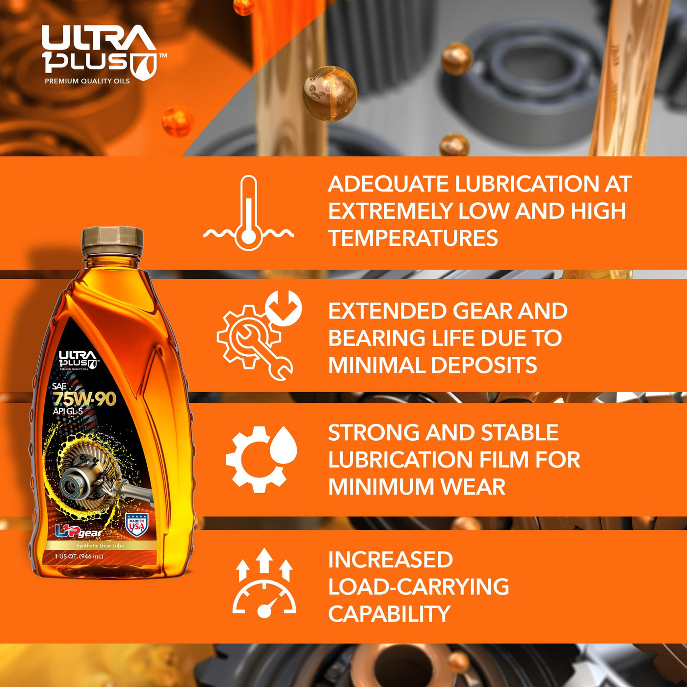 U1P-Gear SAE 75W-90 Synthetic Limited Slip Gear Oil, API GL-5, MT-1 is formulated with synthetic base oils and specialty performance additives to provide improved high-temperature thermal and oxidative stability in a wide range of operating conditions.Specialty anti-scuffing additives and friction modifiers provide advanced protection and lubricity in extreme pressure conditions. Additionally, U1P-Gear SAE 75W-90 Synthetic Limited Slip Gear Oil, API GL-5, MT-1 is highly shear stable while also resisting rust, oxidation, foaming, and varnish.U1P-Gear SAE 75W-90 Synthetic Limited Slip Gear Oil, API GL-5, MT-1 is designed for use in all seasons and exceed the year-around, all-weather performance viscosity requirements of SAE J306 as well as the rigorous performance requirements of API GL-5.