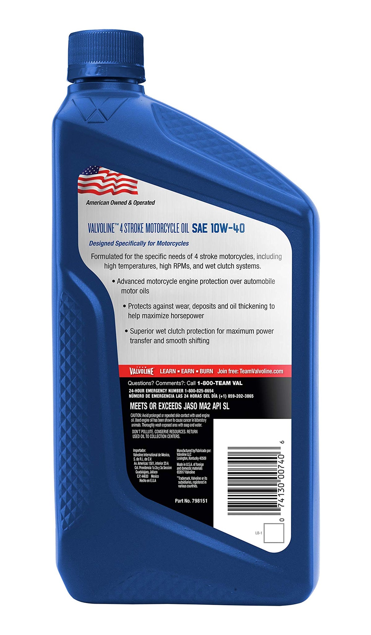 Valvoline 4-Stroke Motorcycle Oil Contains Proprietary Blends Of Premium Base Oils And Advanced Additive Technology To Help You Achieve Peak Performance From Your Machine. The Thermally Stable Formula Helps Maintain Proper Lubrication And Protects Engine Under High Rpm And High Temperature Conditions. It Possesses Optimal Frictional Characteristics For Maximum Power Transfer, Smooth Shifting And Proper Protection Of The Wet Clutch.