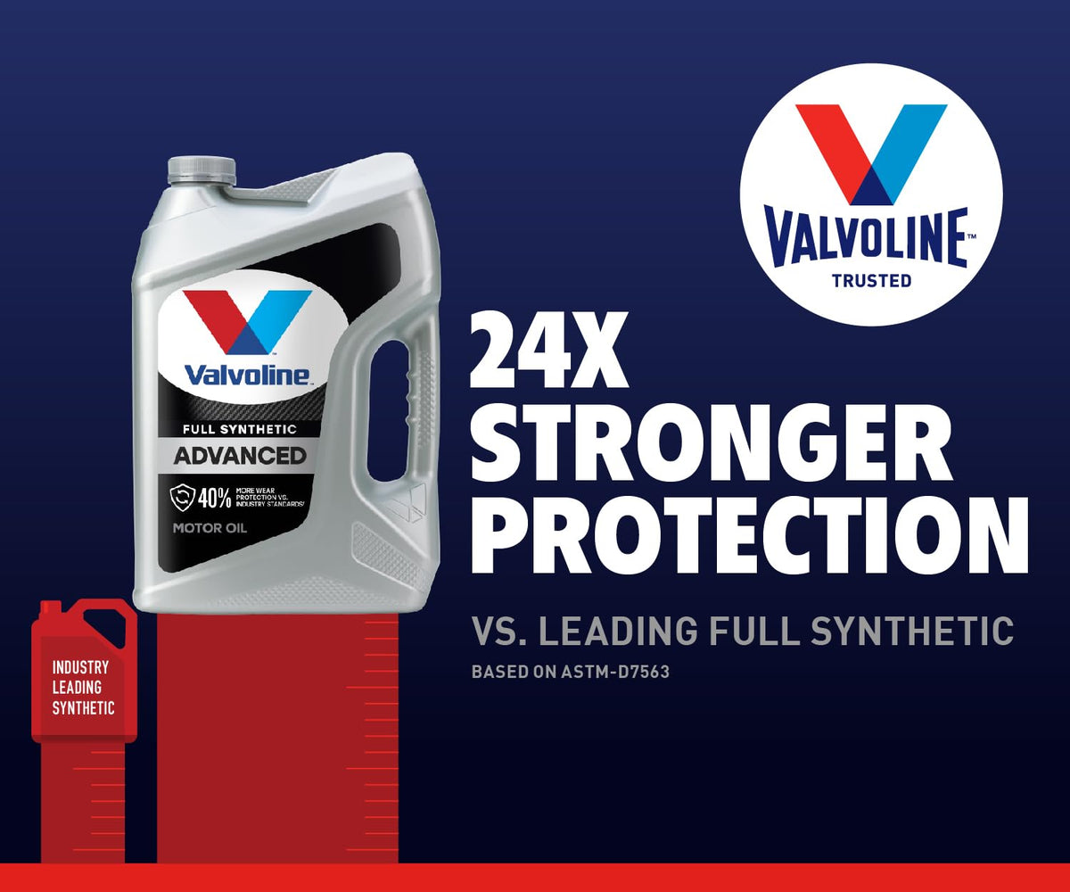 Anything A Conventional Motor Oil Can Do Valvoline Advanced Full Synthetic Can Do Better. Designed With The Highest Quality Base Oils And Additives, It Delivers 25% Better Deposit Protection And 40% Better Protection Against Wear Than Industry Standards. With Less Wear, You Can Expect Stronger Performance, Optimal Fuel Efficiency, And A Longer-Lasting Engine. Driving Conditions Like Short Trips Or Stop-And-Go Traffic Are Hard On A Vehicle And The Cars Engine Oil, Causing Extreme Heat And Temperature Fluctuations Inside Your Motor That Can Lead To Harmful Sludge And Extra Friction. Valvoline Advanced Full Synthetic Motor Oil Includes Additional Boosters To Minimize The Effects Of Heat. And For Enhanced Cold Start Protection, It Flows Easily At Low Temperatures. Step Up To One Of Our Best Motor Oils For Superior Performance In All Types Of Weather And Conditions. Valvoline Advanced Full Synthetic Motor Oil Provides 24X Stronger Protection Against Engine-Killing Contaminants Than The Leading Full Synthetic, Keeping Your Motor Running Smooth Whether Its A Ford, Toyota, Dodge, Jeep Or Honda. Valvoline Advanced Full Synthetic, From The Original Motor Oil Brand Trusted For More Than 150 Years.