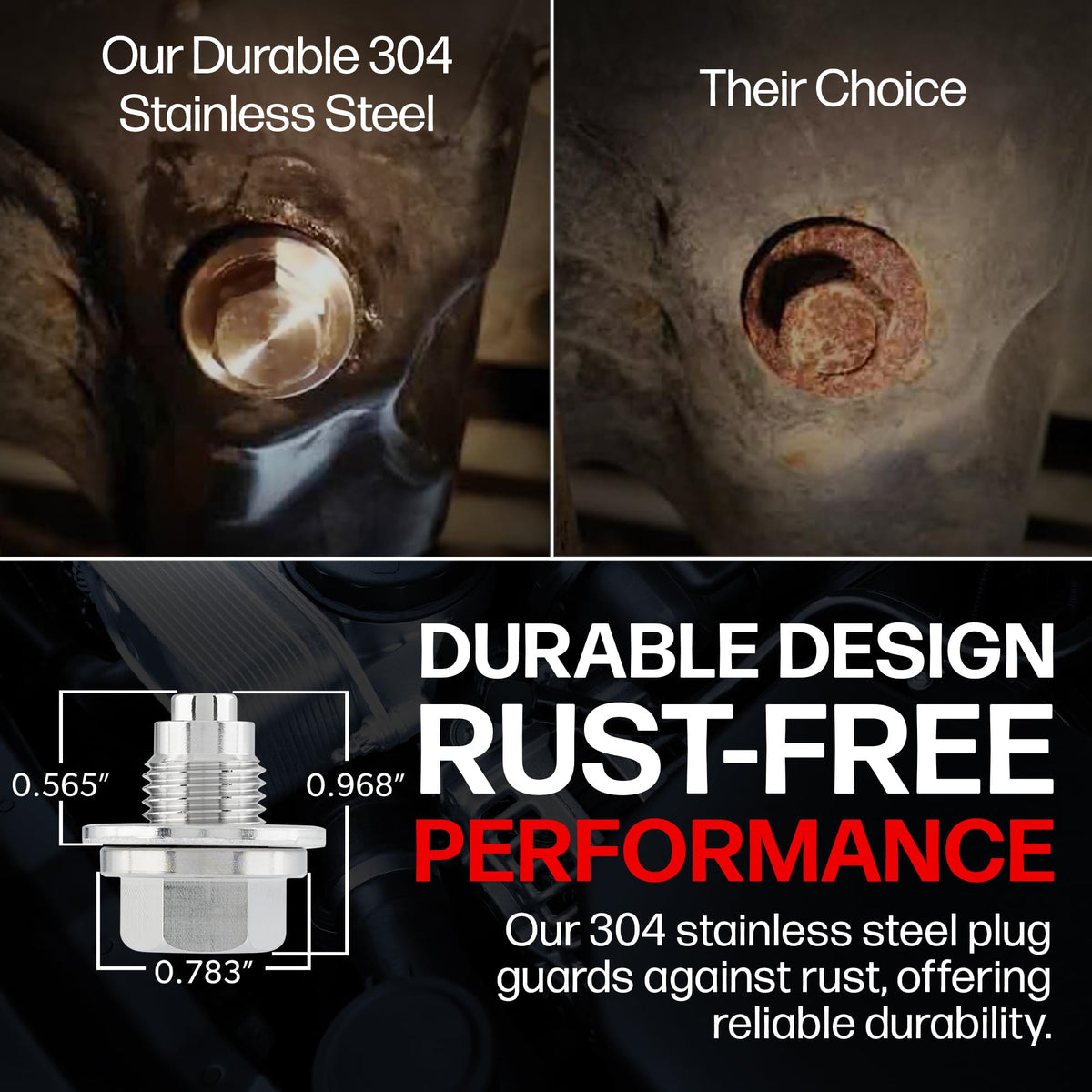 Q: What materials are used in the construction of the Votex drain plug?A: The Votex drain plug is constructed from premium 304 stainless steel, providing superior durability compared to aluminum alternatives. This robust construction prevents shearing or snapping, ensuring reliability for long-term use.