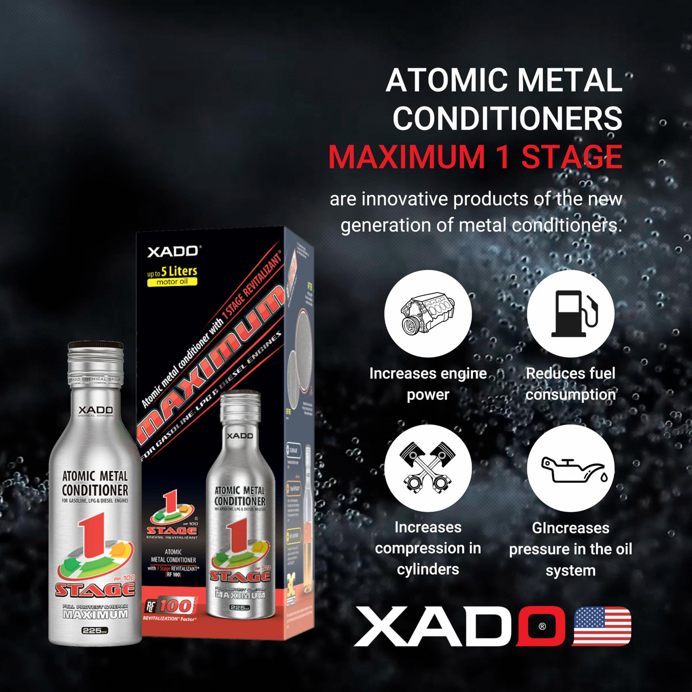Atomic Metal Conditioner Maximum With 1 Stage Revitalizant Is An Innovative 3-Component Product Specially Formulated For Treating Vital Engine Parts In Cars With Oil System Capacities Up To 5 Quarts. Thanks To The Revitalizant, The Product Reduces Friction, Rebuilds Worn Metal In Engine Parts, And Creates A Protective Coating Against Future Wear. This Provides Tools-Free Restoration And Anti-Wear Protection, Prolonging The Life Of Your Engine And Helping Avoid Expensive Future Repairs. One Treatment Lasts For 60,000 Miles! Benefits: Rebuilds Worn Engine Metal And Reverses Metal Wear Increases Power And Acceleration Reduces Fuel Consumption Increases Engine Cylinders’ Compression Decreases Noise And Vibrations Restores Lost Oil Pressure To Nominal Levels Protects Metal Parts From Overheating And Overloading Improves Oil Lubricating Properties And Tribological Characteristics Of Engine Parts Increases Engine Service Life Reduces Exhaust Emissions Toxicity (Co2, Co, Hc) One Treatment Lasts For 60,000 Miles Application: Ensure The Automobile Engine Is Warmed Up To Normal Operating Temperature. Turn Off The Vehicle. Shake The Bottle For One Minute And Ensure It Is At Room Temperature So The Contents Flow Freely. Pour The Contents Into The Engine Oil Reservoir. Start The Car And Let The Engine Idle For Five Minutes. Drive As You Normally Would. It Takes 600 To 900 Miles To Complete The Revitalization Cycle, During Which Changing The Oil Is Not Recommended. Granules Of Revitalizant Completely Dissolve In Motor Oil At Normal Operating Temperature. One Bottle (225 Ml) Is Enough For Engines With An Oil Capacity Of 5 Quarts. Larger Vehicles With Higher Oil Capacities May Require More.