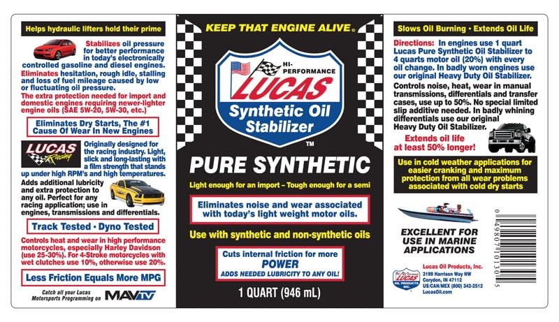 Lucas Oil 10130-Synthetic Oil Stabilizer - 1 Quart (Pack Of 12)