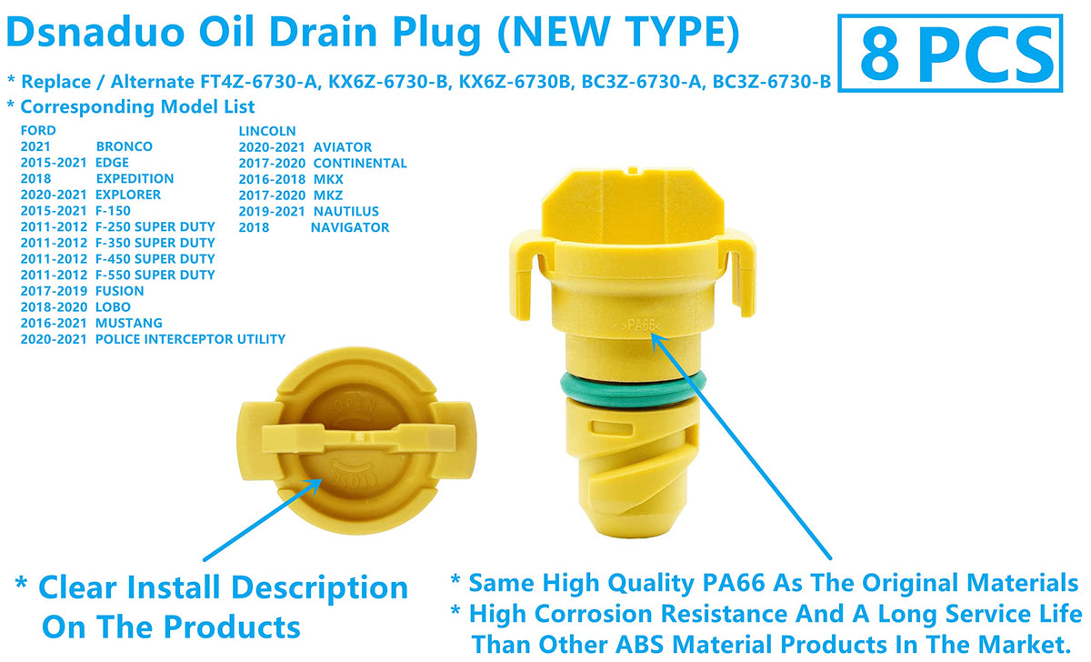 8Pcs Dsnaduo Oil Drain Plug Fit For 2011-2024 Ford F-150 F150 Mustang Bronco Edge Explorer Lincoln Aviator Mkz Kx6Z6730B Kx6Z-6730-B Bc3Z-6730-A Bc3Z-6730-B Ft4Z-6730-A Bc3Z6730A Bc3Z6730B