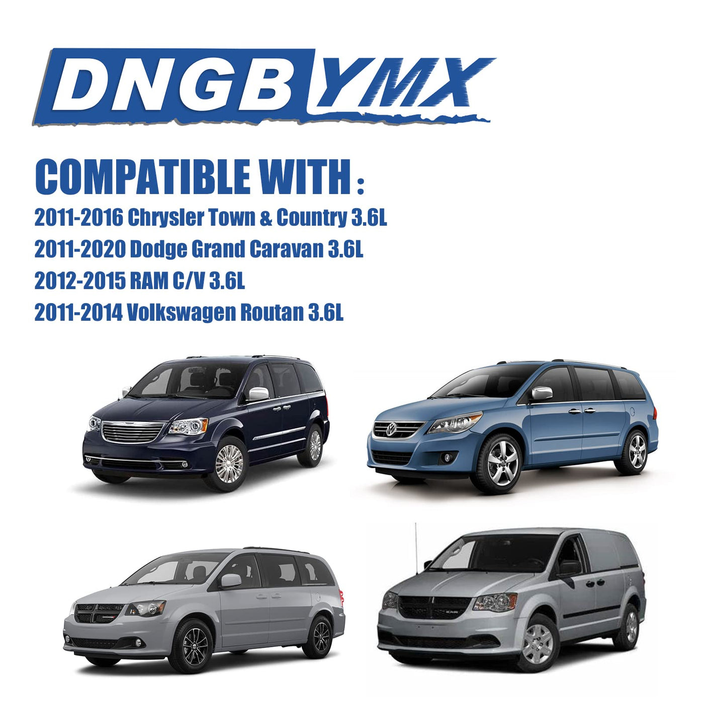 Q: What vehicles are compatible with this engine motor mount set?A: This engine motor mount set is compatible with the following vehicles: 2011-2016 Chrysler Town & Country 3.6L, 2011-2020 Dodge Grand Caravan 3.6L, 2012-2015 RAM C/V 3.6L, and 2011-2014 Volkswagen Routan 3.6L.