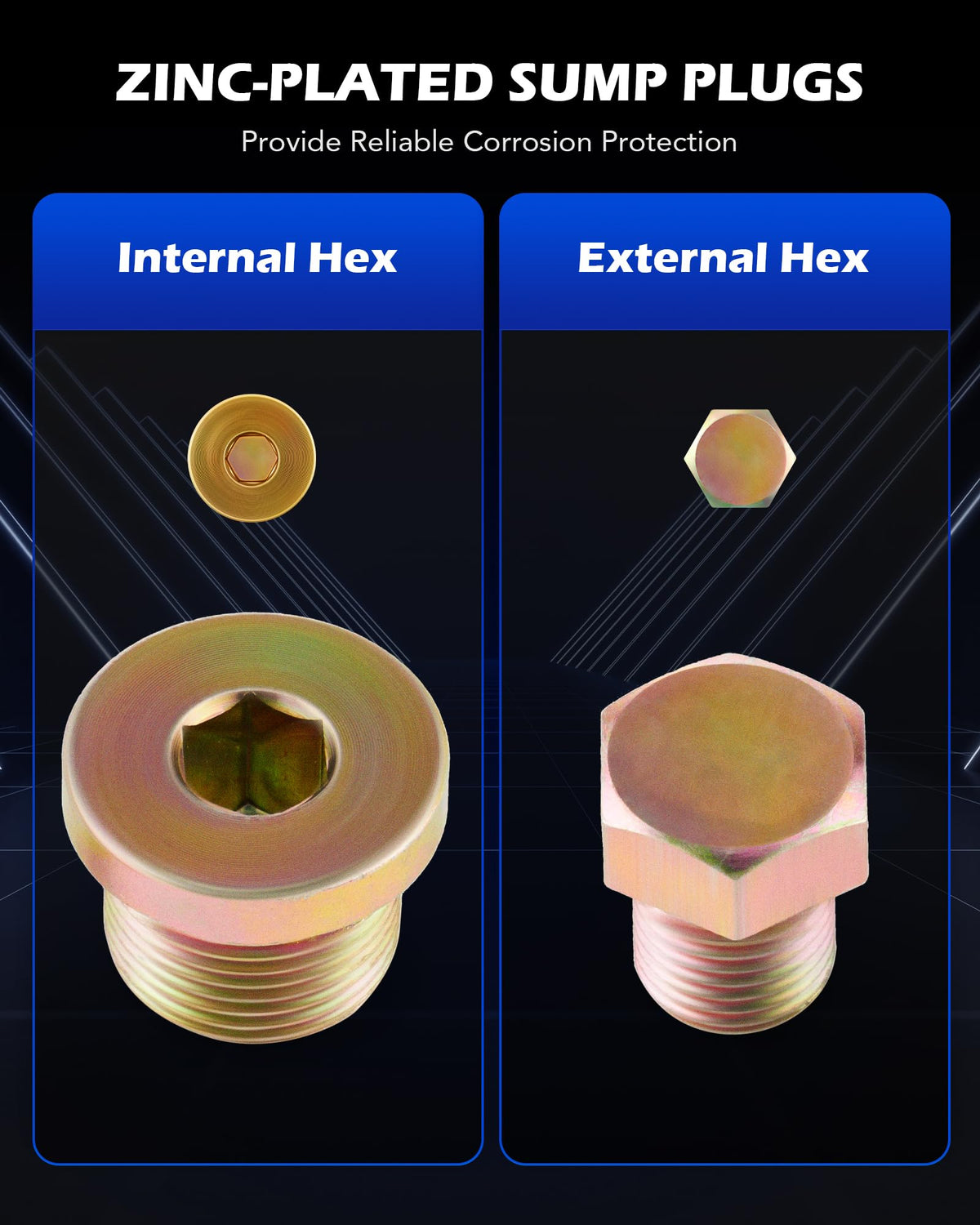 Q: What materials are used in the construction of the taps and drain plugs?A: The taps and crush washers are made from high-quality carbon steel and aluminum, ensuring durability and strength. Additionally, the hex sump plugs feature a zinc coating for enhanced longevity and corrosion resistance.