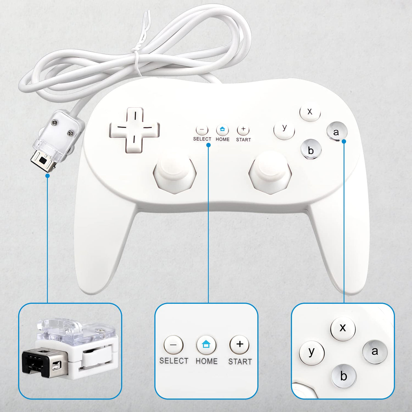 Ostent Wired Classic Controller Pro Gamepad Joystick For Nintendo Wii Remote Console Video Game Color White
