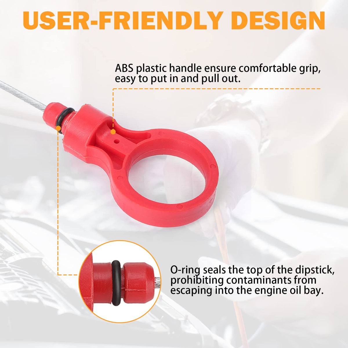 OEM DESIGN, DIRECT FIT: Made of high flexible stainless steel with a convenient plastic handle, this dipstick is rust and corrosion resistant. The O-ring seals the top of the dipstick to prevent contaminants from entering the engine oil bay.