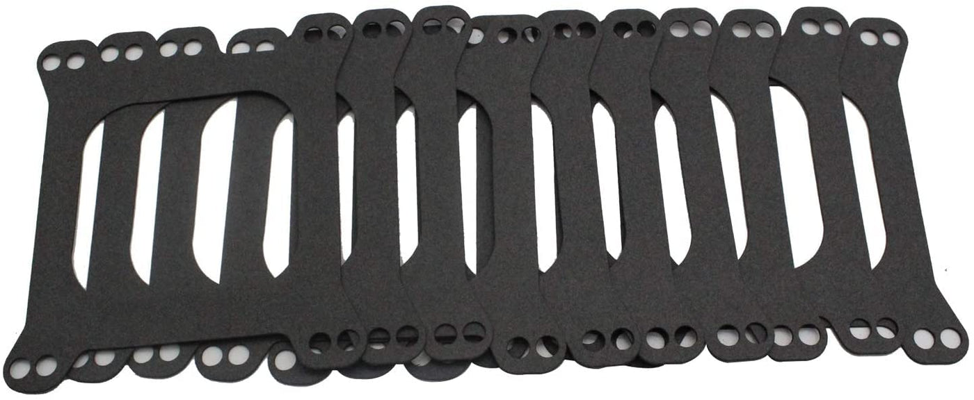 Q: Can these gaskets be used with different carburetors?A: Yes, these gaskets are compatible with various carburetors, including Holley, Edelbrock, Carter, AFB Open Port, as well as Rochester Quadrajet and Thermoquad carburetors.