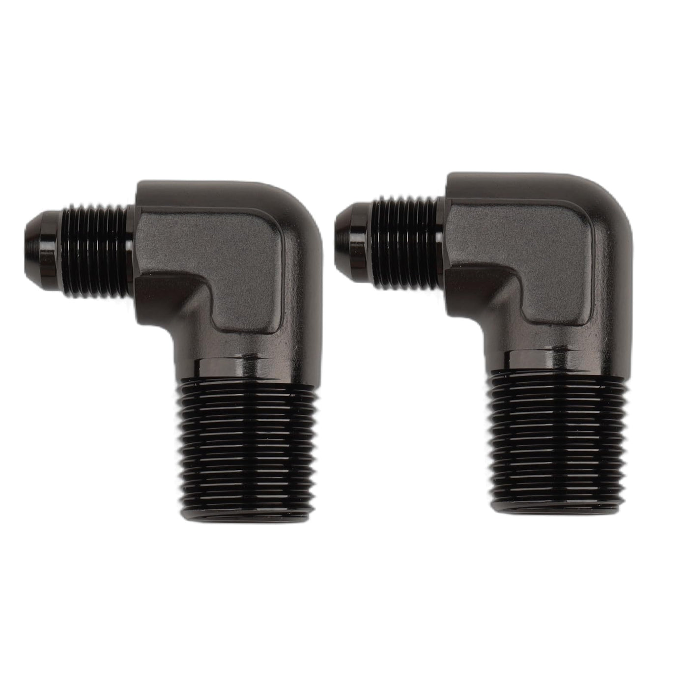 Ac Performance 90 Degree Elbow -6 An Male To 1/2'' Npt Male Fitting Adapter Connector Aluminum Black, Pack Of 2