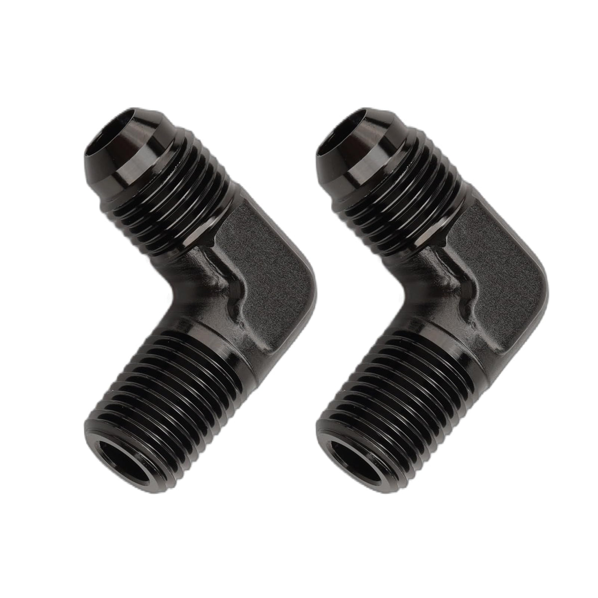 Ac Performance 90 Degree Elbow -8 An Male To 3/8'' Npt Male Fitting Adapter Connector Aluminum Black, Pack Of 2