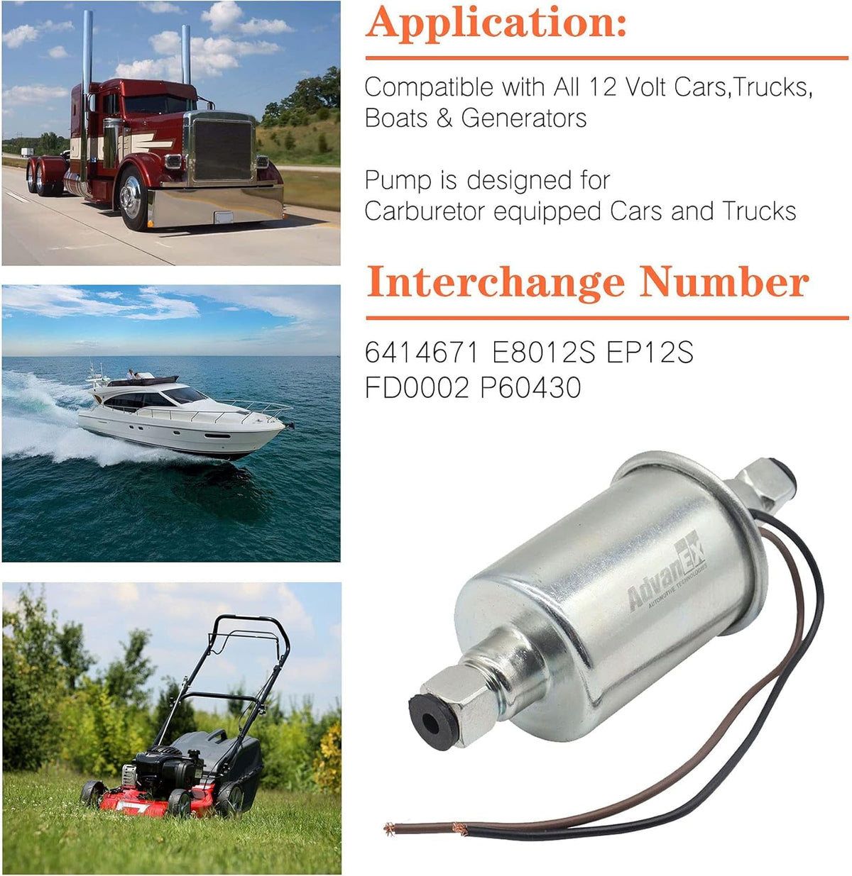 Advanex Universal Electric Fuel Pump 12V Low Pressure Gasoline Diesel Transfer Pump For Carburetor With Installation Kit E8012S
