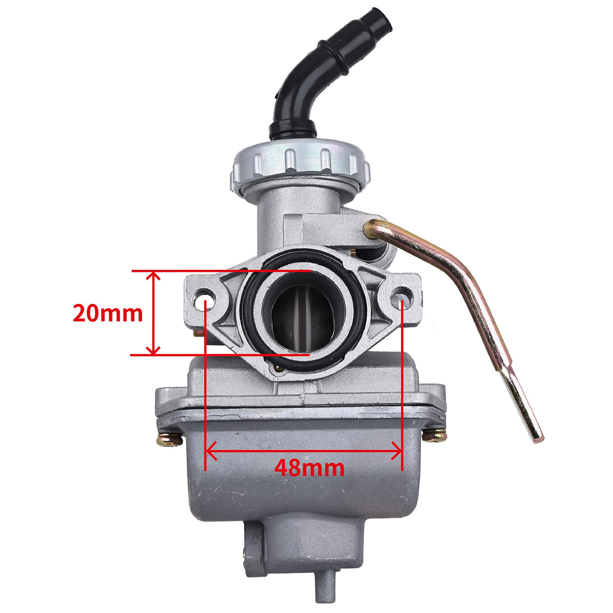 PZ20 Carburetor Fits most TaoTao NST SunL Kuzuma Baja 50cc 70cc 90cc 110cc 125cc Chinese ATVs, go karts with 4 stroke engine. Carburetor Fits for HONDA CRF 80 CRF80 CRF 80F CRF50F Dirt Pit Bike Carb 2004 2005 2006 2007. PZ20 Carburetor for Dirt Bike ATVs, Quads, Go Carts, and UTVs CRF XR 4 stroke ATVs 50cc 70cc 90cc 110cc 125cc Chinese ATVs, go karts with 4 stroke engine. Carburetor Fits most Chinese brand carbs such as Taotao SunlRoketa Coolster, Taotao, Sunl, Roketa, Kazuma Buyang, Coolsport, Lifan, Kazuma, AIM-EX, SUNL, Honda, Redcat, Eagle. Size: Inner Diameter (intake side): 20mm Bolting Hole Distance: 48mm Air Filter Mounting Inner Diameter: 28mm Air Filter Mounting Outer Diameter: 32mm Package includes: 1 carburetor + 1 fuel filter + 1 air filter + 2 gasket + 1 O ring. Note: Please make sure the interchange part number matches the part you are replacing; and check our photos and make sure the part shown looks identical to your old one.