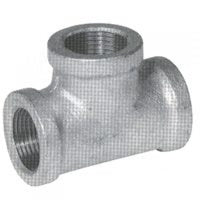 Q: What materials is the B&K Industries Tee made from?A: This tee fitting is constructed from malleable iron and features a galvanized finish, ensuring durability and resistance to corrosion.