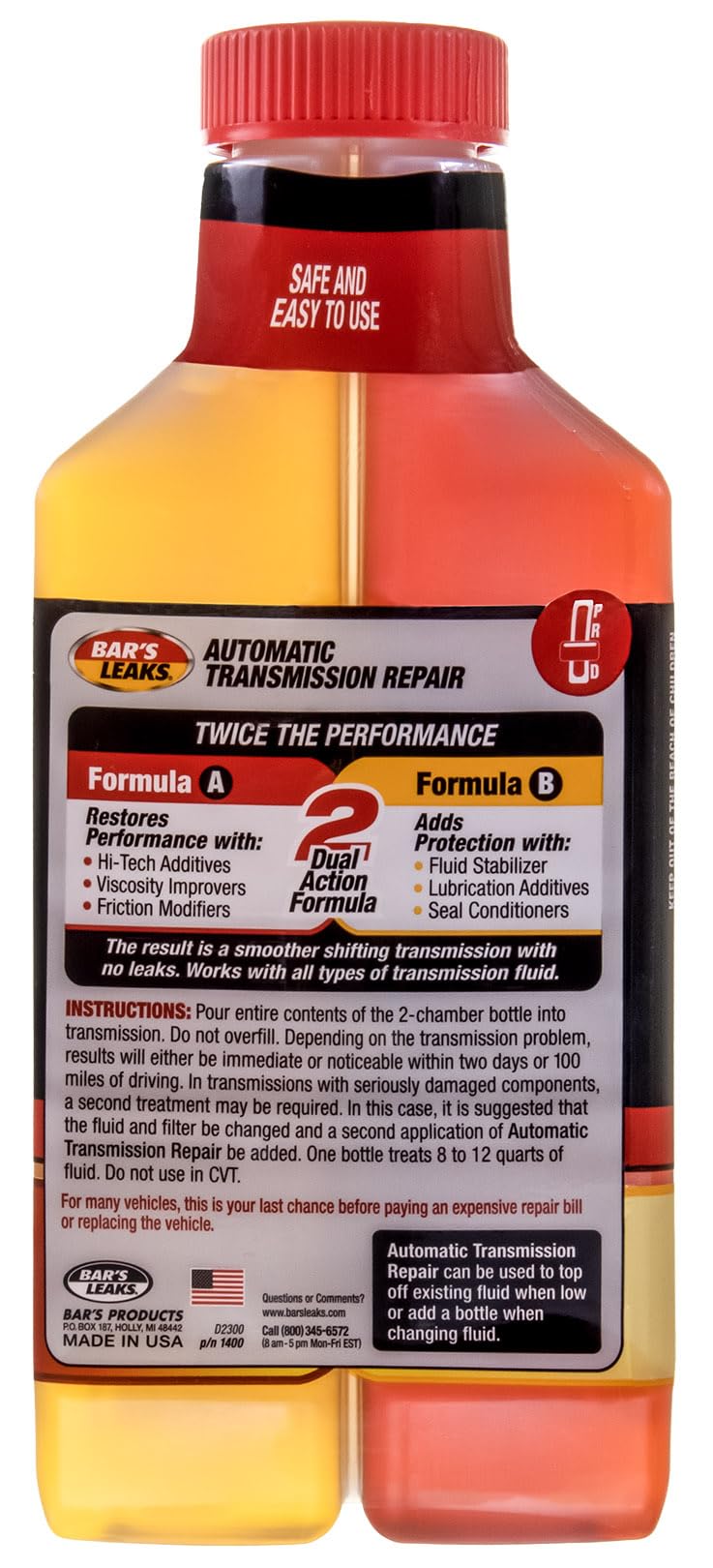 Bars Leaks High Mileage Automatic Transmission Repair Reduces Rough Shifting And Friction, While Eliminating Slip, Controlling Temperature, And Repairing Shudder, Chatter And Whining. Premium High Mileage Formula Restores Transmission Performance And Saves On Costly Transmission / Transaxle Repairs. Note: Do Not Use In Cvt.