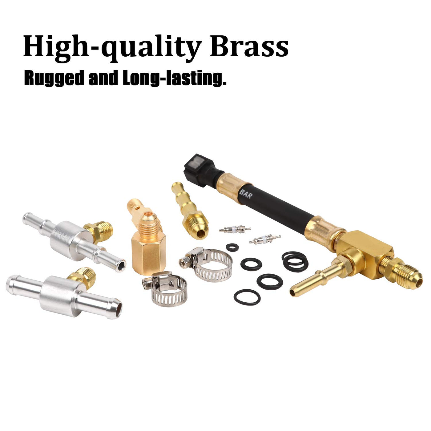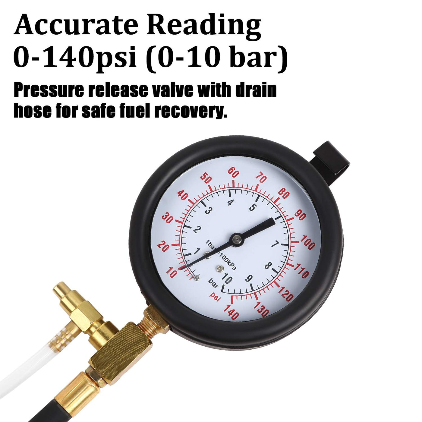 Betooll Pro Fuel Injection Pressure Tester Kit Gauge 0-140 Psi With 9.49,7.89,6.30 Fuel Line Fittings