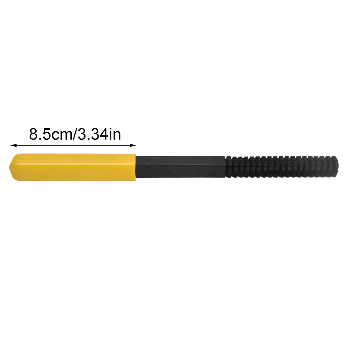 Q: How do I use the thread repair file to fix damaged threads?A: To use the thread repair file, align the damaged thread with the file and gently move it along the thread. The various specifications (0.75/1/1.25/1.5/1.75/2/2.5/3mm) allow you to choose the correct size to effectively restore the threads on studs, bolts, or screws.