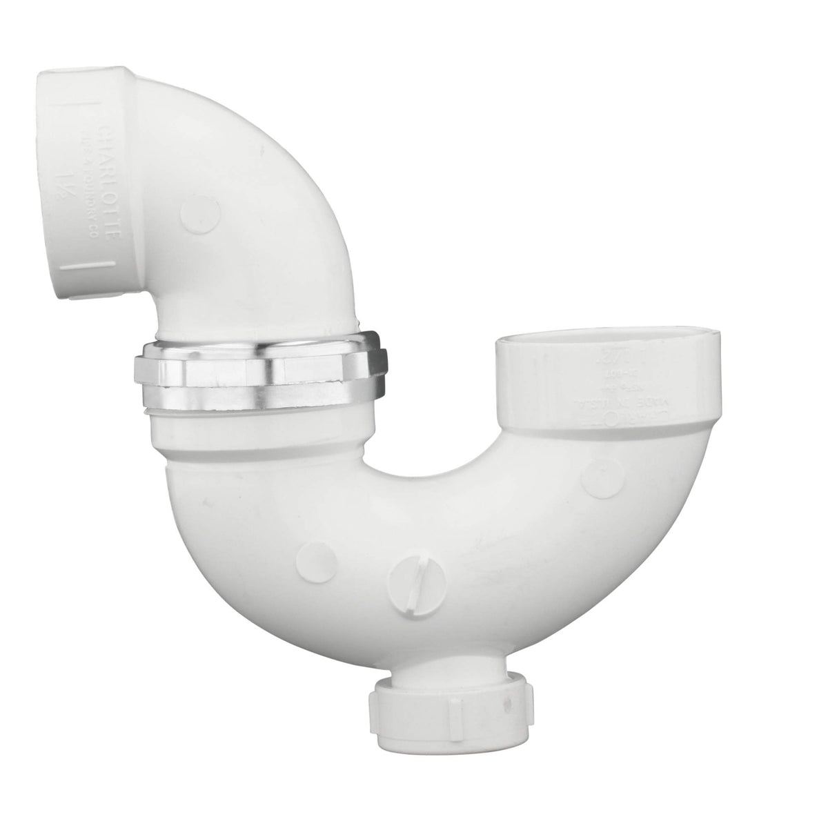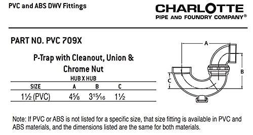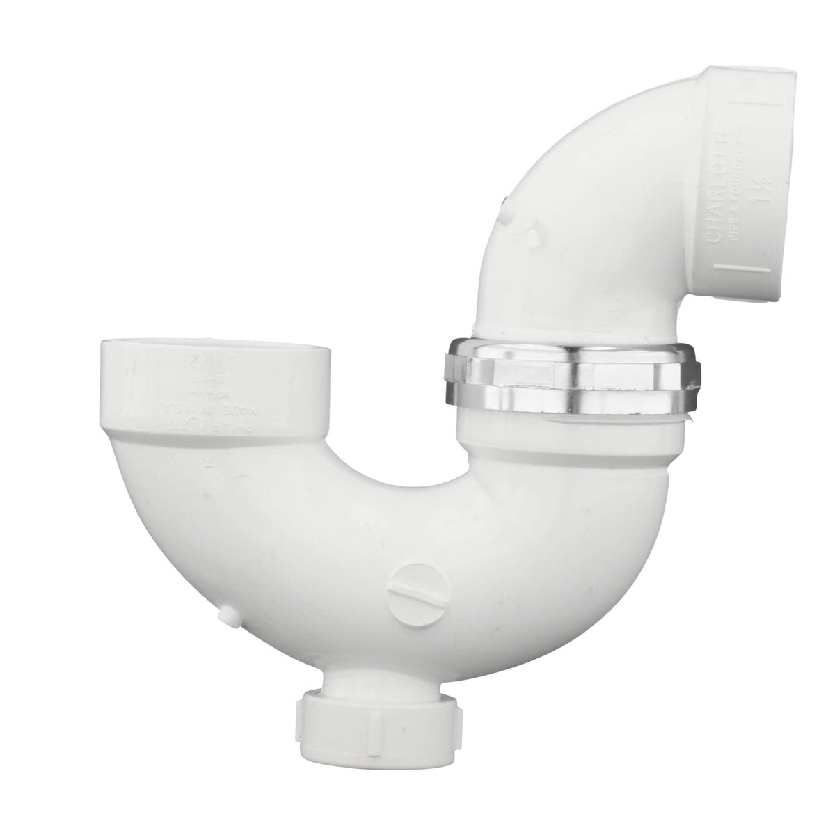 Q: What materials are used in the construction of this pipe fitting?A: The CHARLOTTE PIPE 1 1/2 DWV P-TRAP is made from high-quality Polyvinyl Chloride (PVC), ensuring durability and reliability.