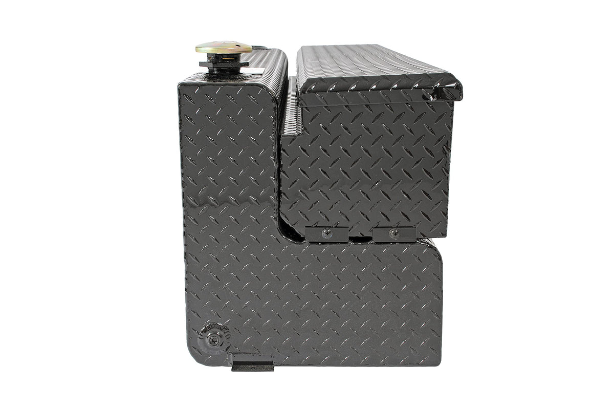 Dee Zee Combo Tanks - The Convenience Of A Utility Chest Connected To A Liquid Transfer Tank. Constructed Of Brite-Tread Aluminum. Black Powder Coat Finish. Radius Curve Design Eliminates Key Weld Pressure Points. Feature 3 Stability Baffles, Lockable Cap, .375' Drainage Plug, And Venting Coupler. Intended For Private Use (Non-Commercial). Not Designed For Use As An Auxiliary Fuel System. Not For Use With Gasoline. Does Not Meet Title 49 Of The United Stated Federal Registry Governing Transportation.