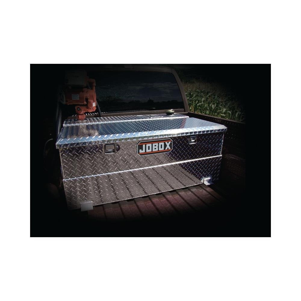 Combo Liquid Transfer Tank, Material 0.125 Gauge Aluminum, L-Shape, Overall Width 48 1/4 In, Overall Depth 31 In, Overall Height 19 In, Base Height 9 In, Capacity 72 Gal, Storage 4.5 Cu Ft, Silver, Mounting Style Bolts To Truck Bed, Standards Meets Dot Requirements For Combustible Fuels, Check Local Fire Chief Or State Fire Marshal For Local Codes, For Use With Full Compact Trucks, Includes 2 In Npt Reinforced Bungs, (4) Brackets, (2) Full Center Baffles