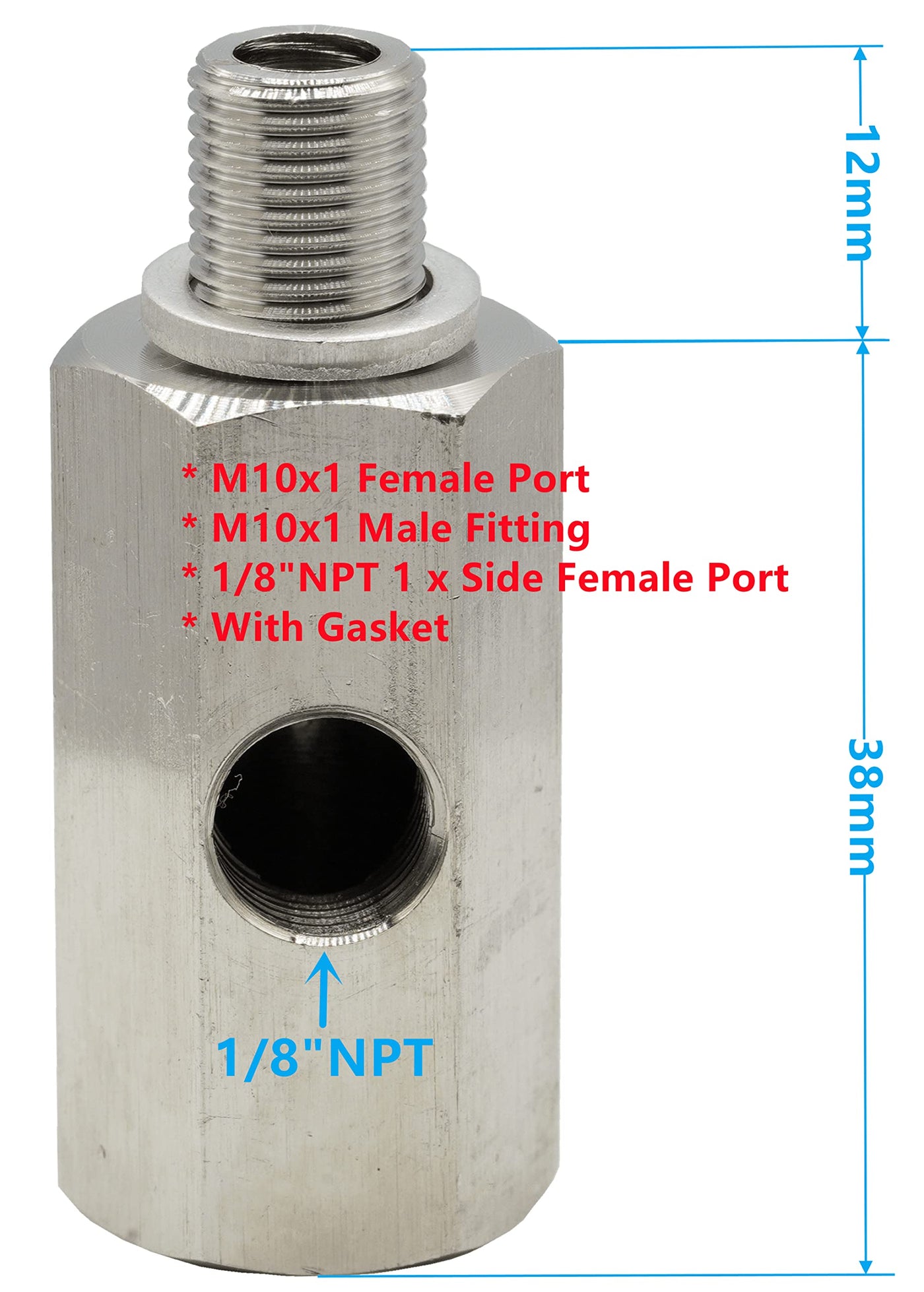 Dsnaduo M10 Oil Pressure Sensor Tee Adapter Turbo Supply Feed Line Gauge M10x1.0 Female to M10 x 1.0 Male with 1/8 NPT Side Port