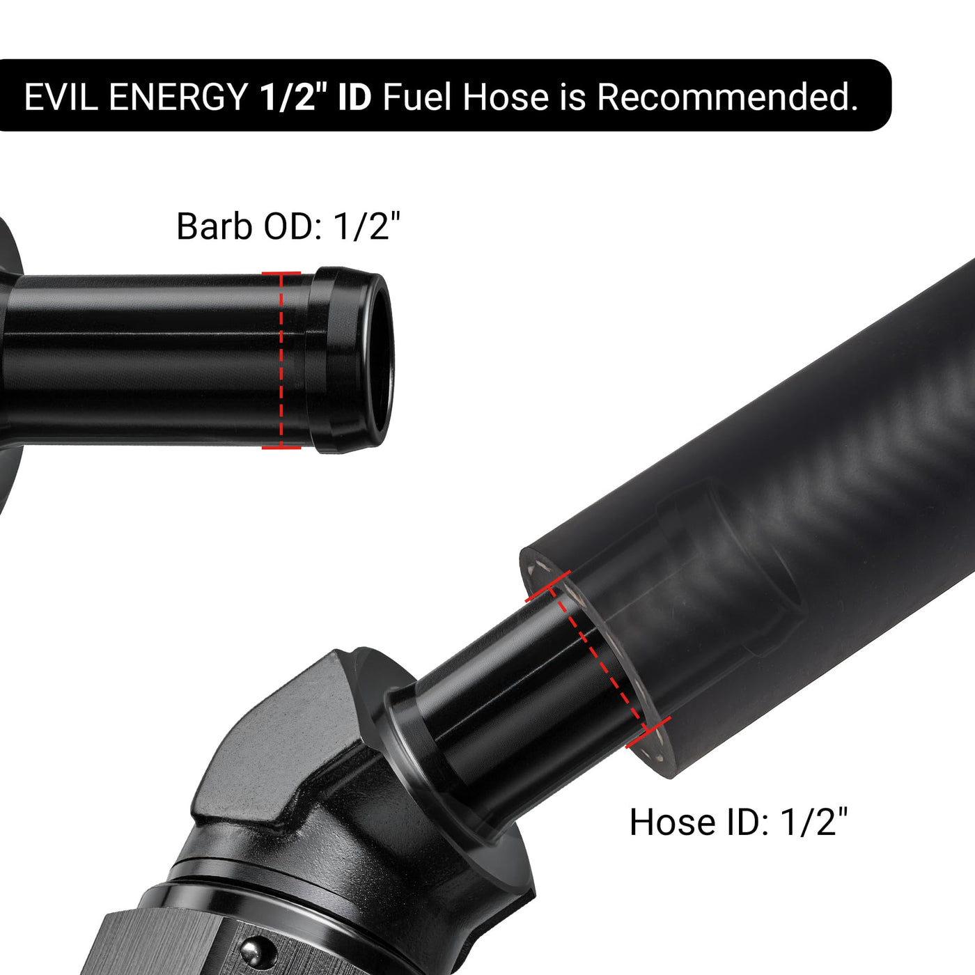 EVIL ENERGY is our brand, we're a direct and professional manufacturer, one of greatest manufacturer and exporter in tuning parts include intake system, exhaust system, fuel system, cooling system, interior and exterior parts. The 10an to 1/2 inch barb is used for pipe link, widely used in fuel system. The barb fitting is made of aluminum alloy 6061-T6 with a black anodized finish. Note: When installing fittings, it is recommended to use clamps to ensure sealing.